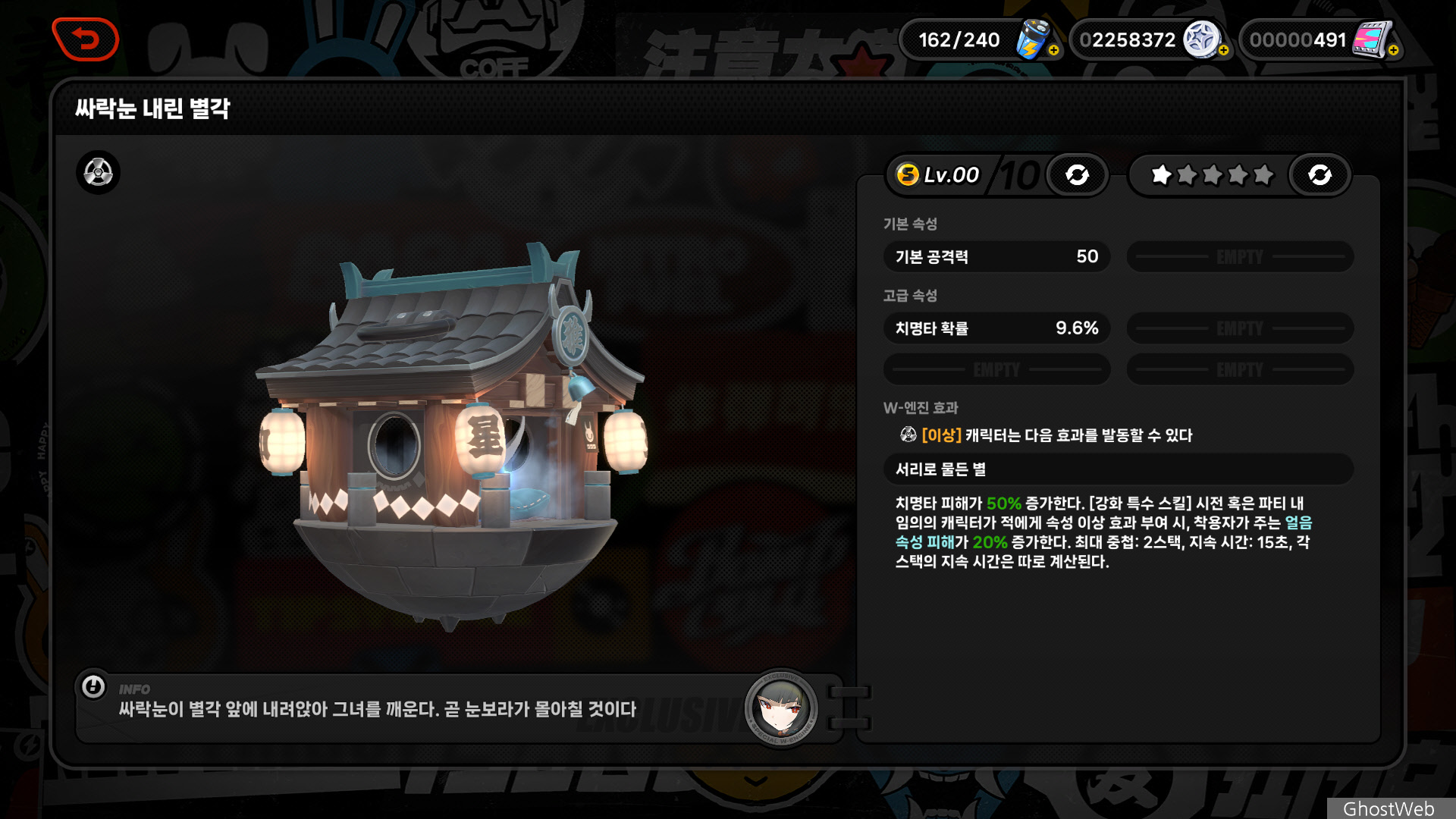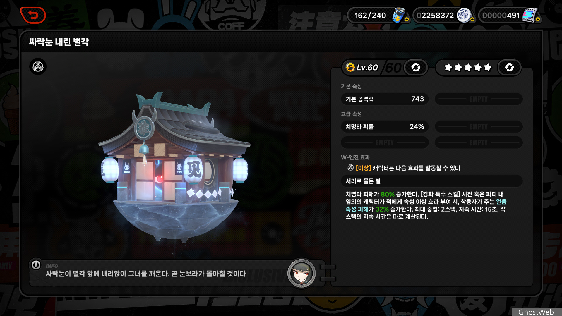 ○ 특성 : 이상 (전용 무기 : 싸락눈 내린 별각)