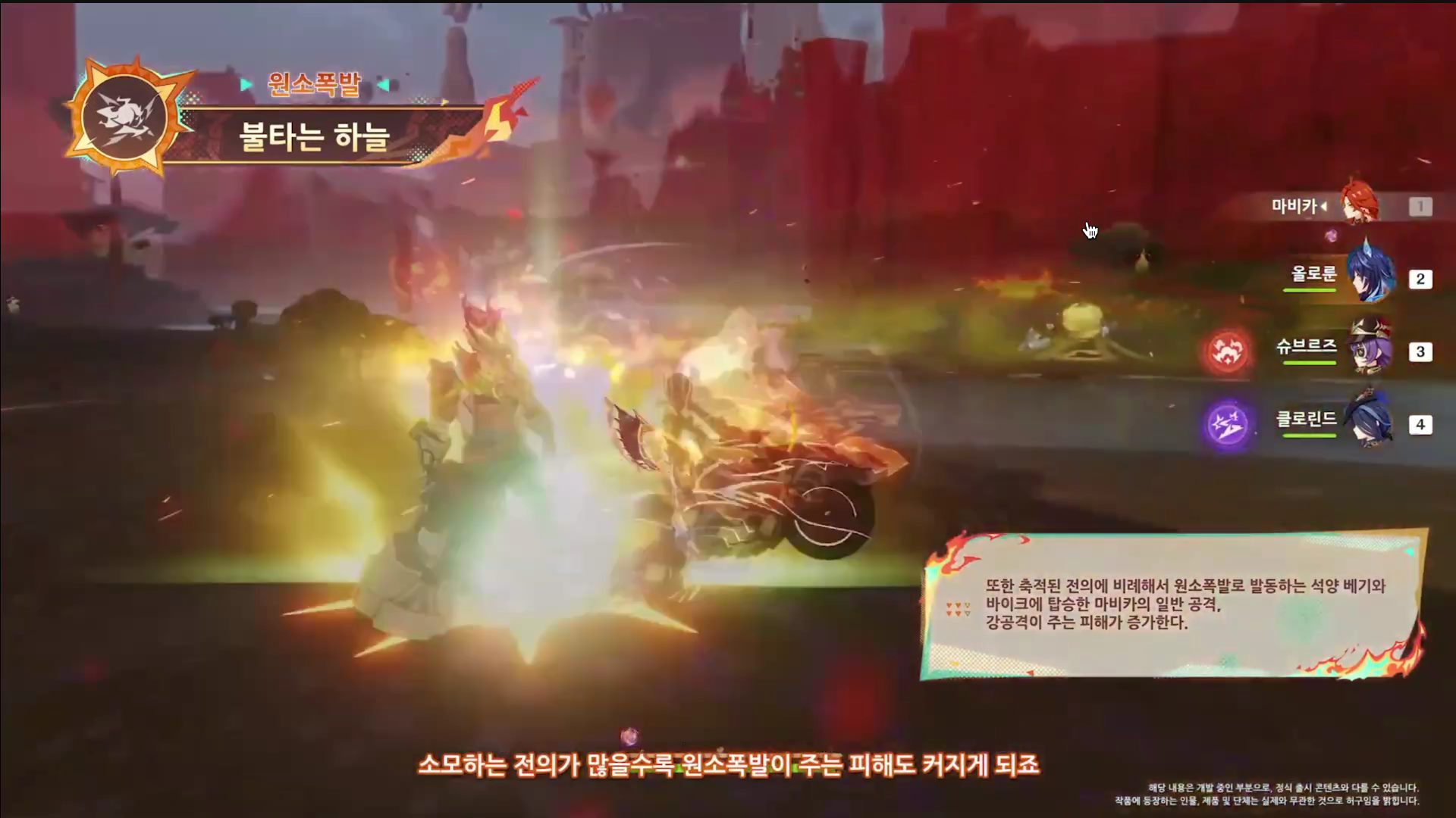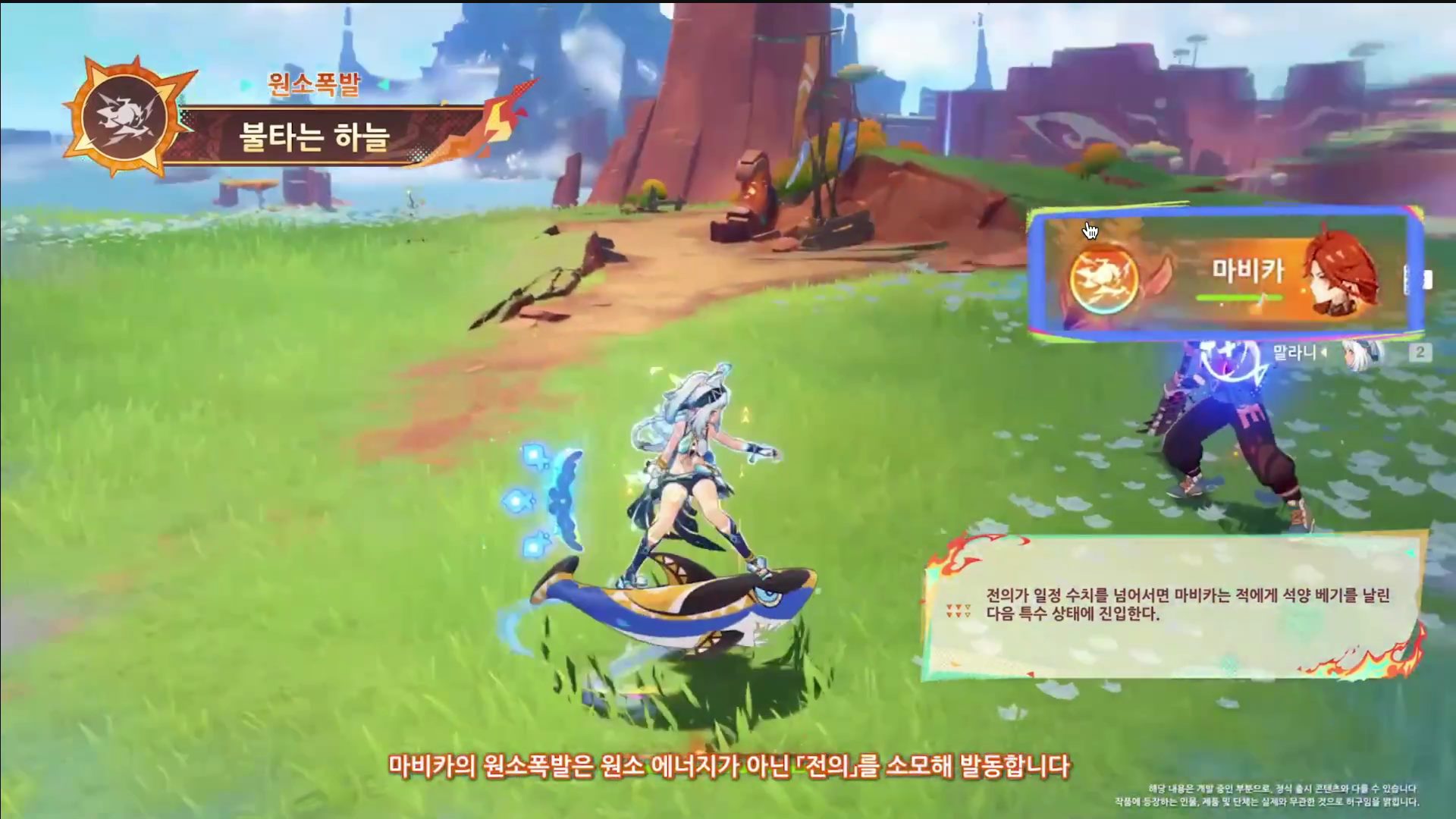 - 마비카가 원소 폭발을 발동하면 발동 시의 전의에 따라 필드 위의 캐릭터가 주는 피해 증가