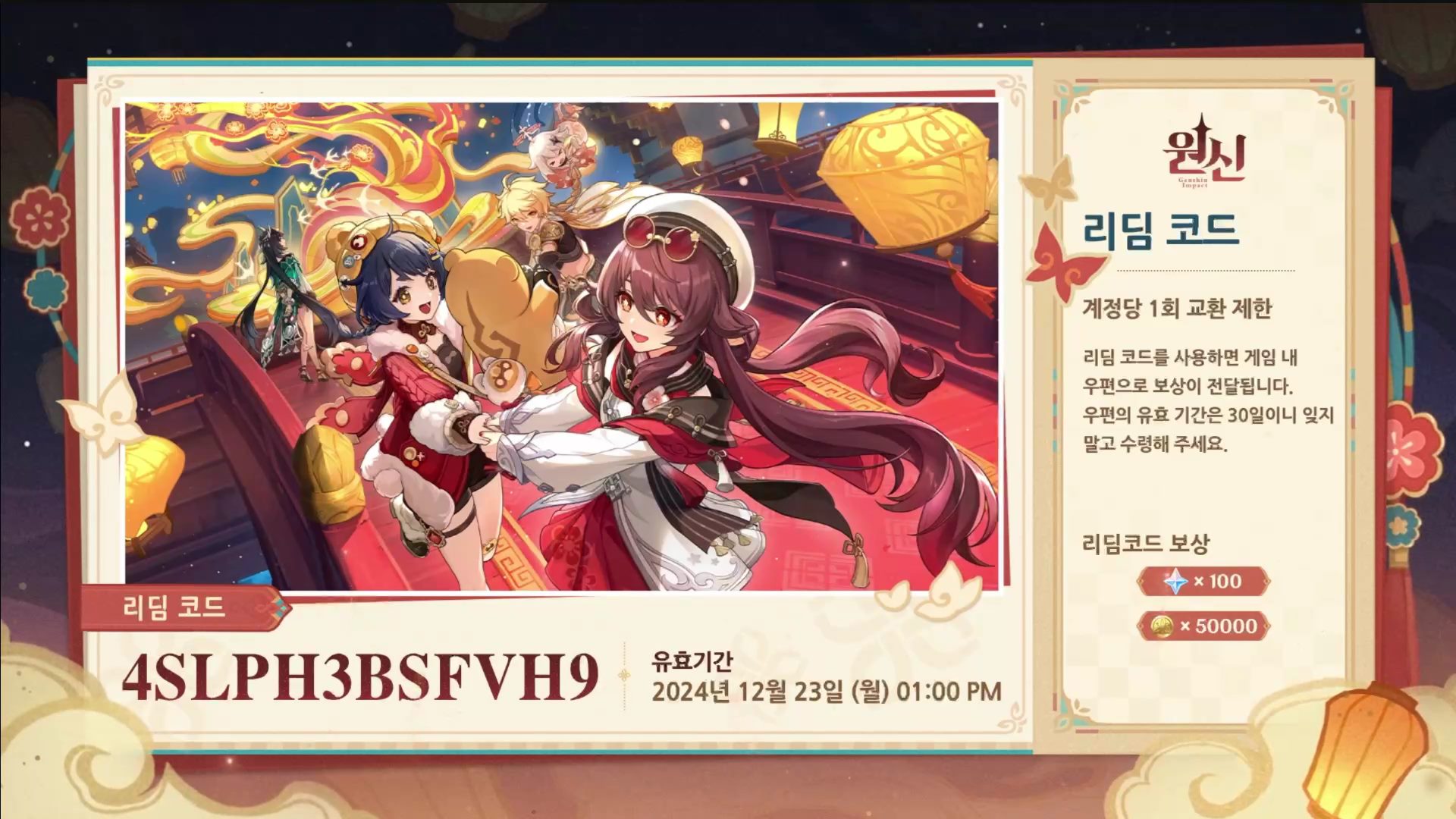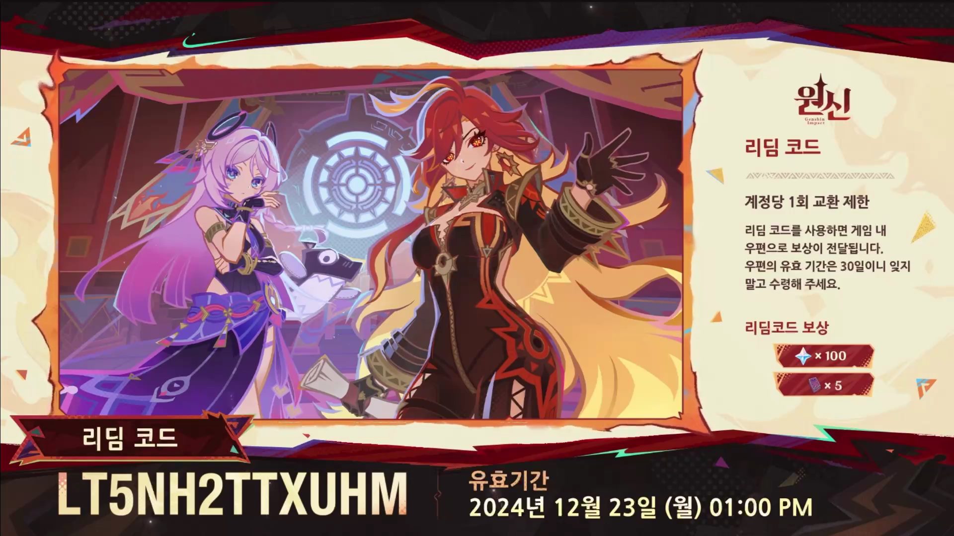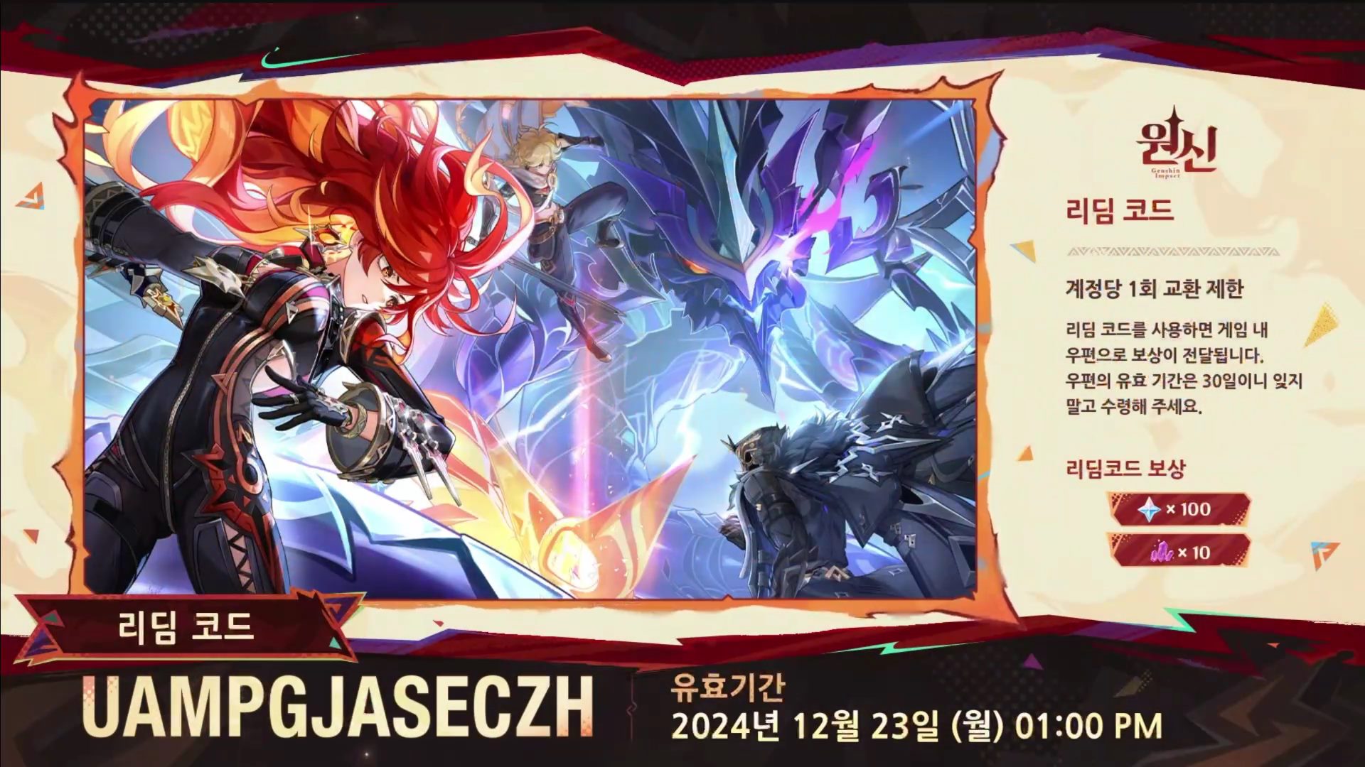 원신 업데이트 특별 방송 등을 보면 중간 마다 리딤코드라는 것을 보여주는데 이를 원신 홈페이지에서 입력하면 원석과 각 코드별로 아이템을 얻을 수 있어요. ※ 유효기간은 대부분 특별 방송