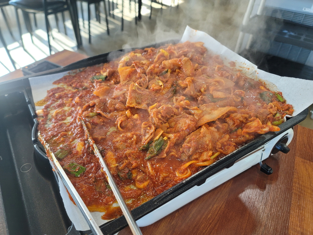 친구랑 둘이서 고추장 주물럭을 주문했는데 달달하며 매콤한 맛이 좋았으며, 함께 나온 밑반찬도 깔끔하여 맛있게 먹고 나왔어요.