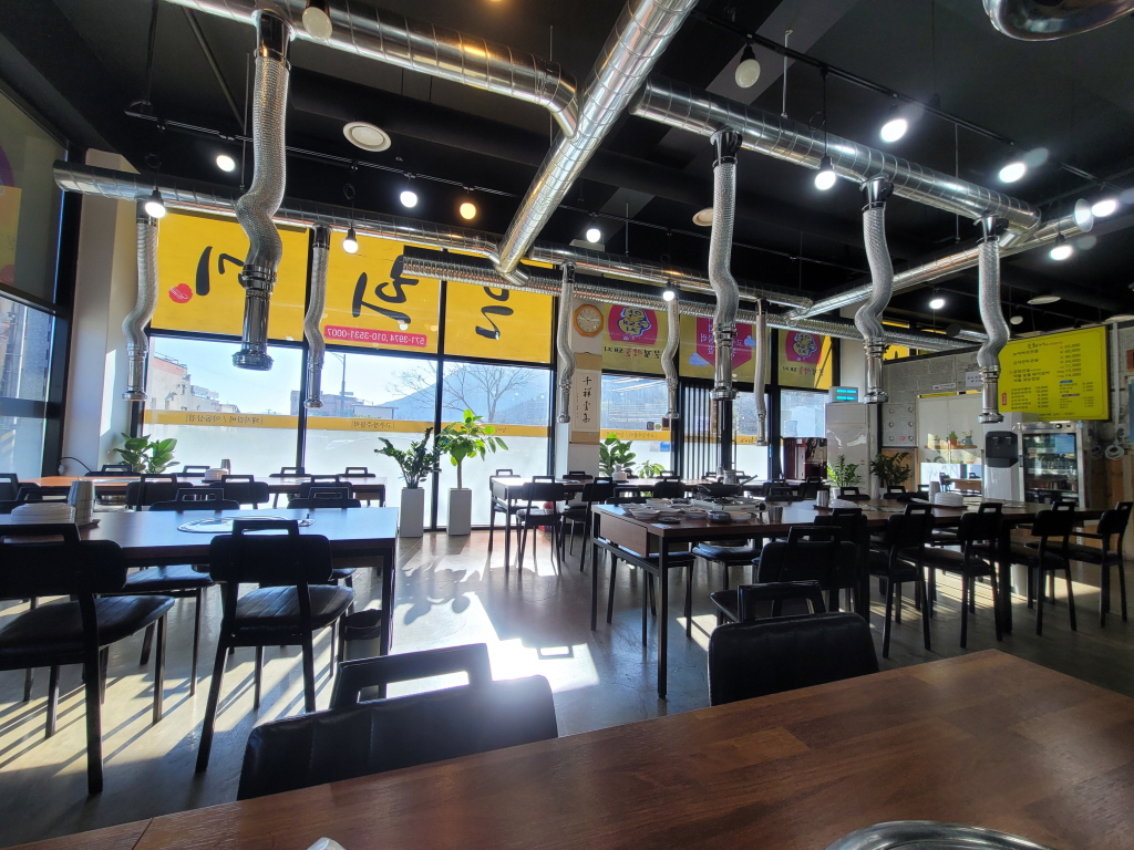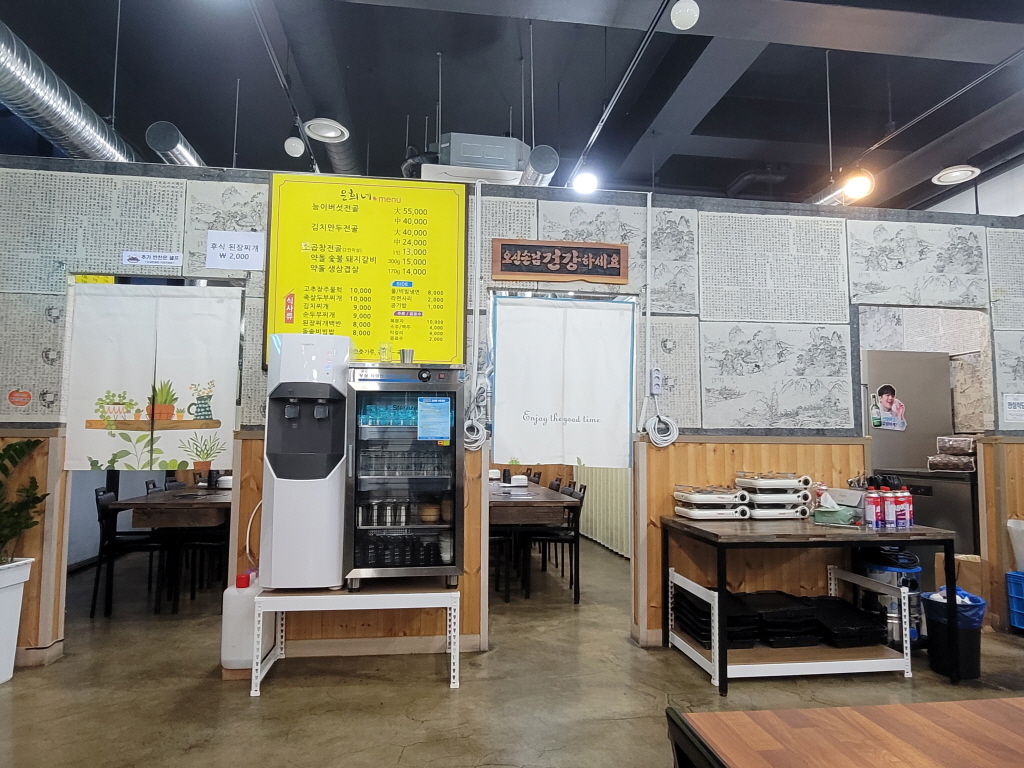 문경 종합 온천에서 걸어서 1~2분 정도로 가깝고 앞에는 차를 주차할 수 있는 공간이 있어서 3~4대 정도는 세울 수 있는 거 같으며, 내부도 넓어서 단체로 가도 충분히 앉을 수 있을 거 같네요.