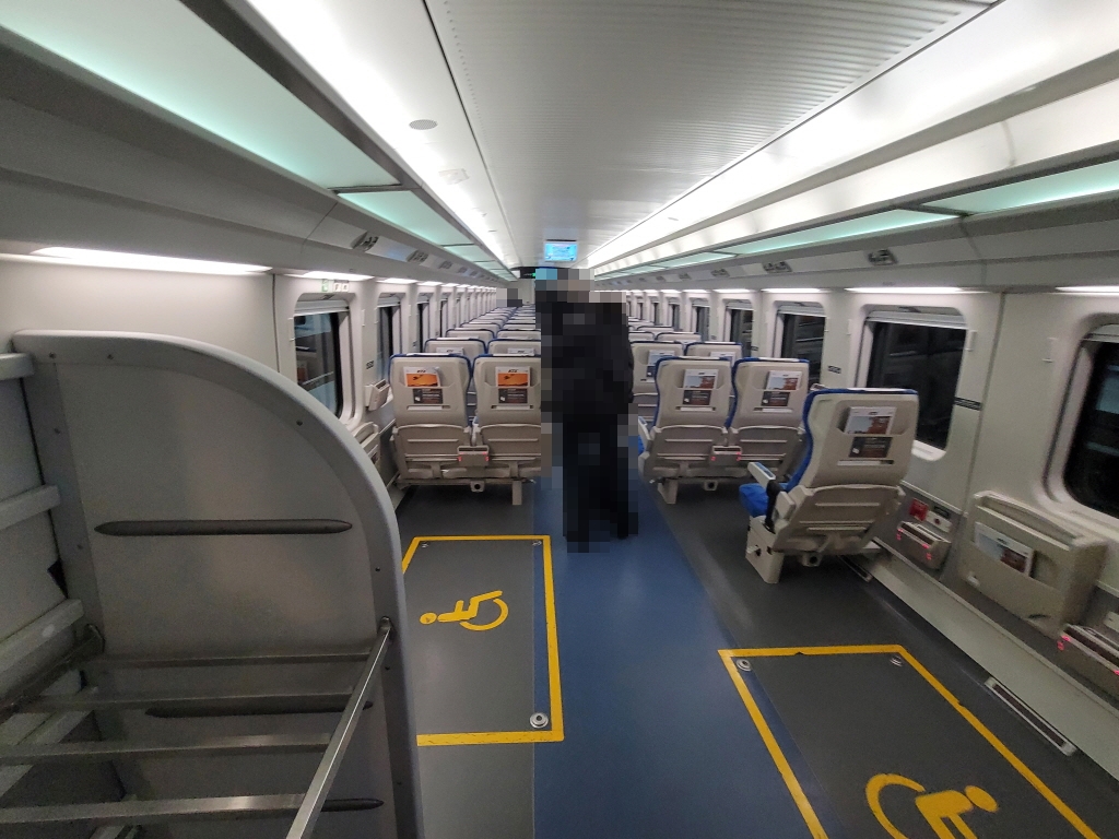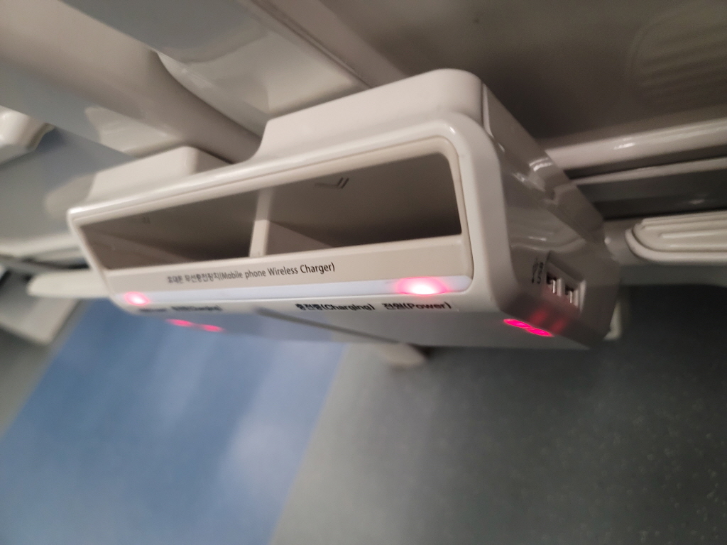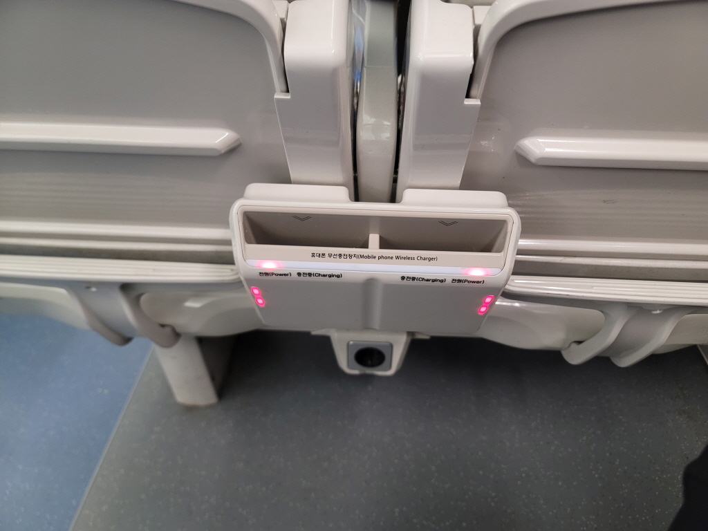 저는 휠체어 탑승이 가능한 호차에 앉았는데 자리도 어느 정도 넓고 앞 좌석에는 휴대폰을 무선 충전기와 그 옆에는 USB 충전 포트가 있어서 다른 장치도 함께 충전이 가능해요.