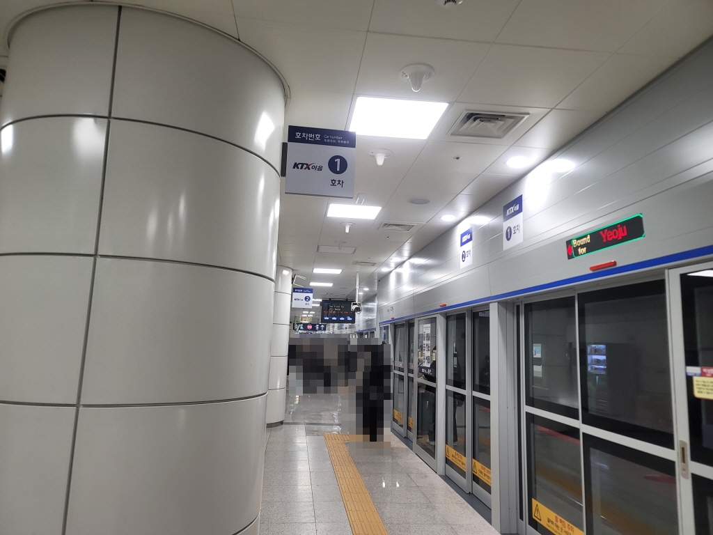 출발 승강장에 가면 KTX이음 호차 번호가 써 있는데 승차권하고 확인하고 혹시 열차가 들어왔는데 지하철하고 헷갈리셔서 탑승하시면 안돼요. ㅎㅎㅎ