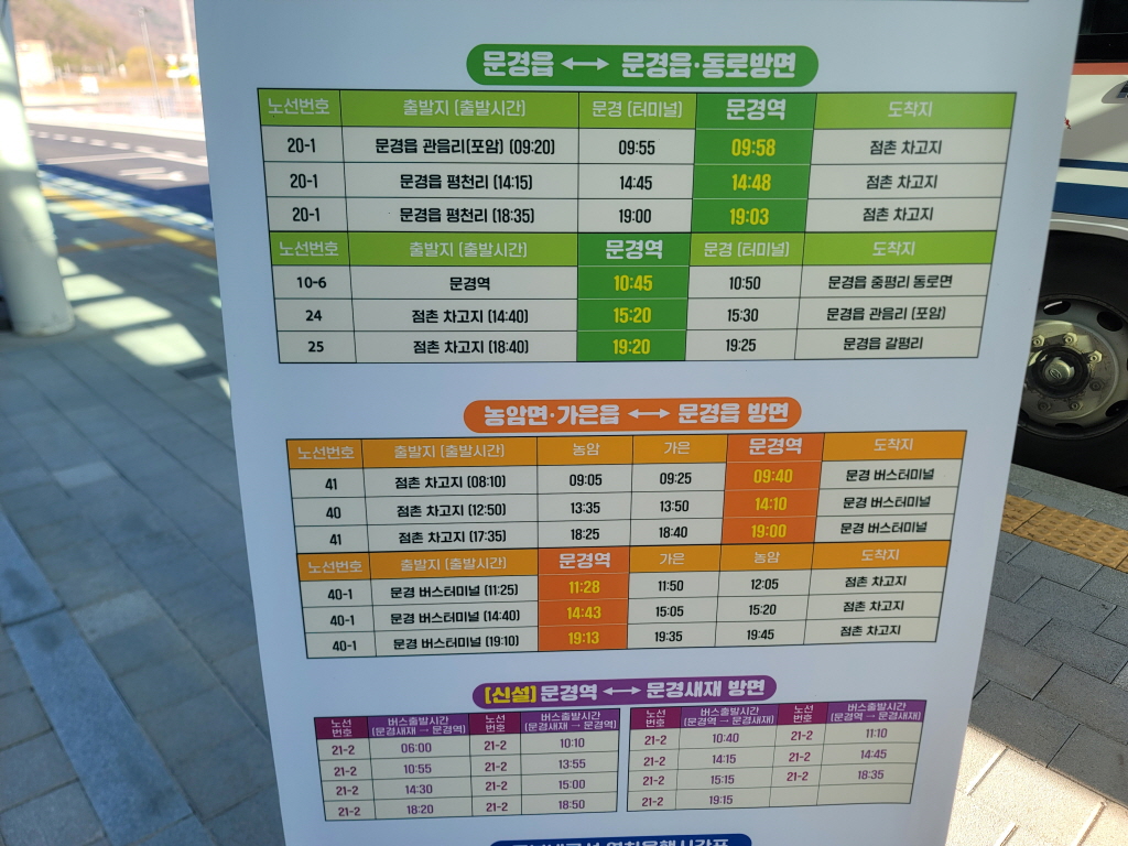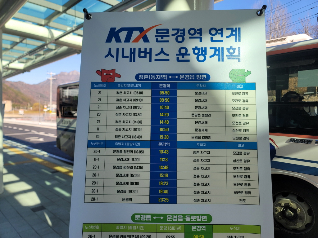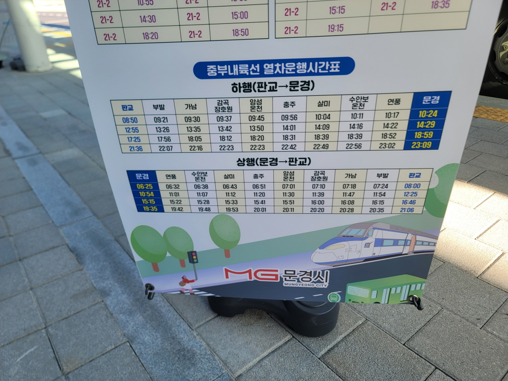 - 문경 출발 : 10:24, 14:29, 18:59, 23:09