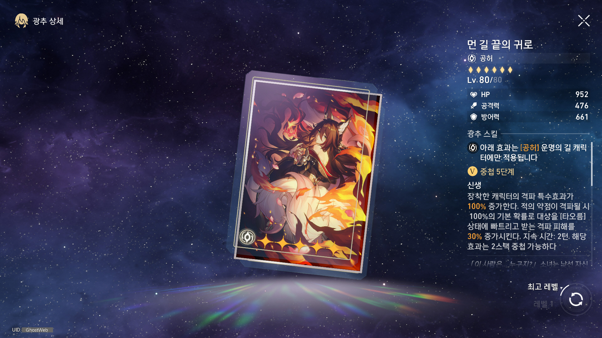 | 4 | 떠나보낸 형체, 짊어진 온 이름 | [여우의 기도]를 보유한 아군이 가하는 격파 피해가 20% 증가한다. |