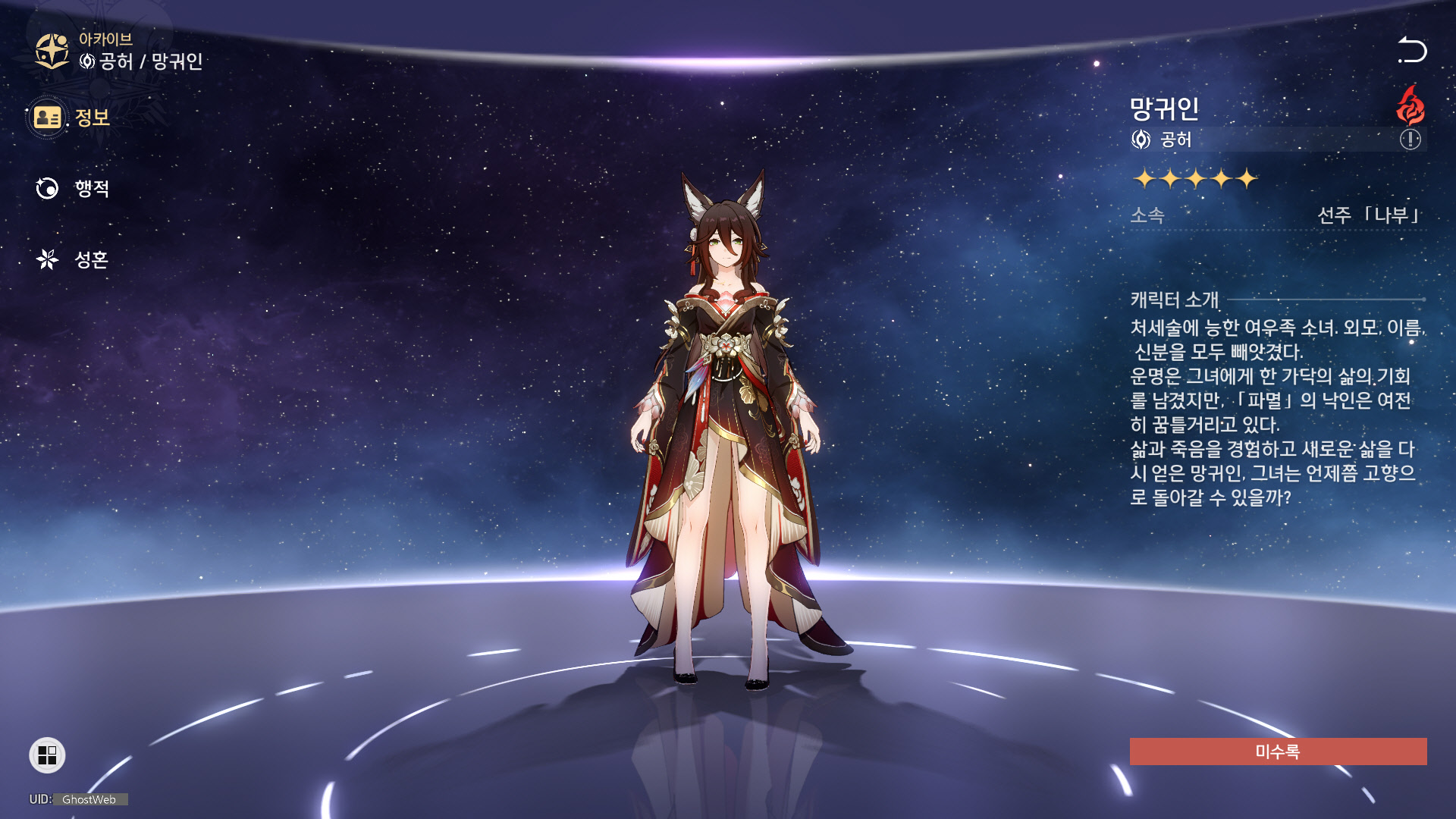 이번에는 화염, 공허 캐릭터인 망귀인에 대해 정리해보도록 할게요.