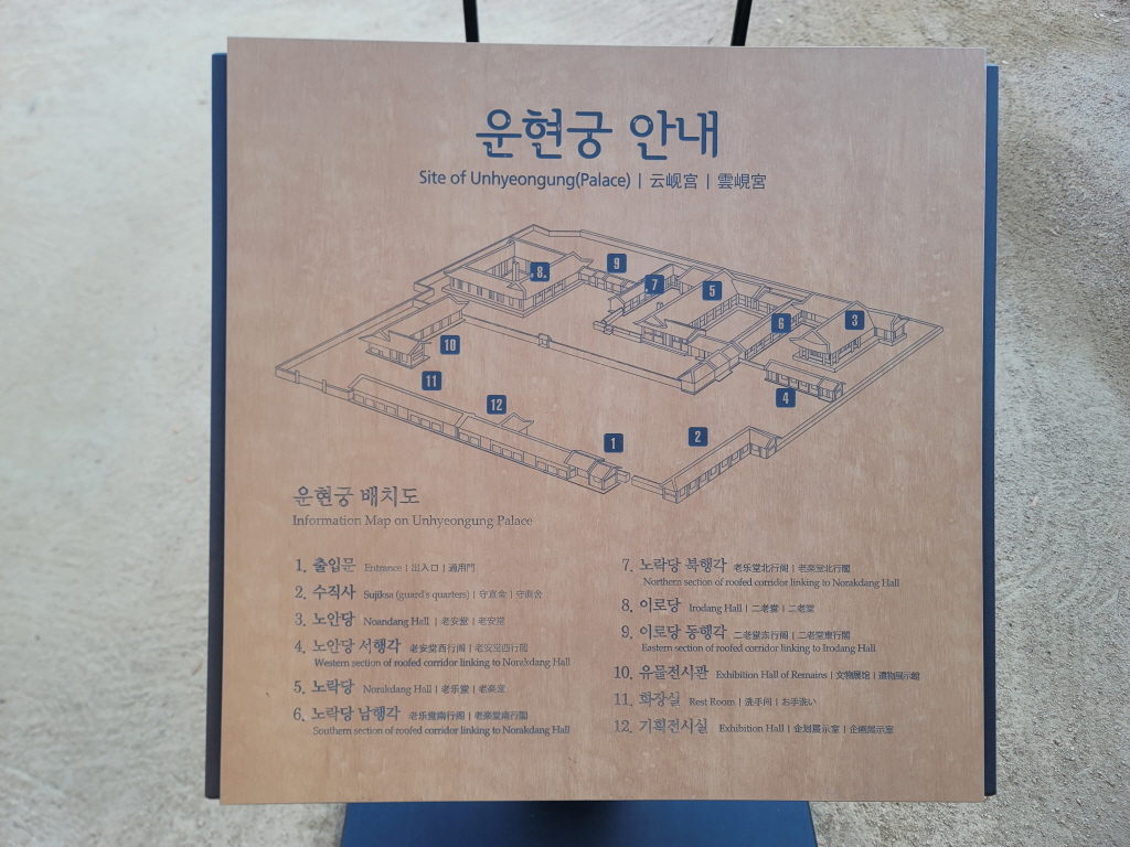 넓은 마당 한편에는 운현궁의 역사를 한 눈에 볼 수 있는 안내판이 설치되어 있어 역사 공부를 할 수 있어요.