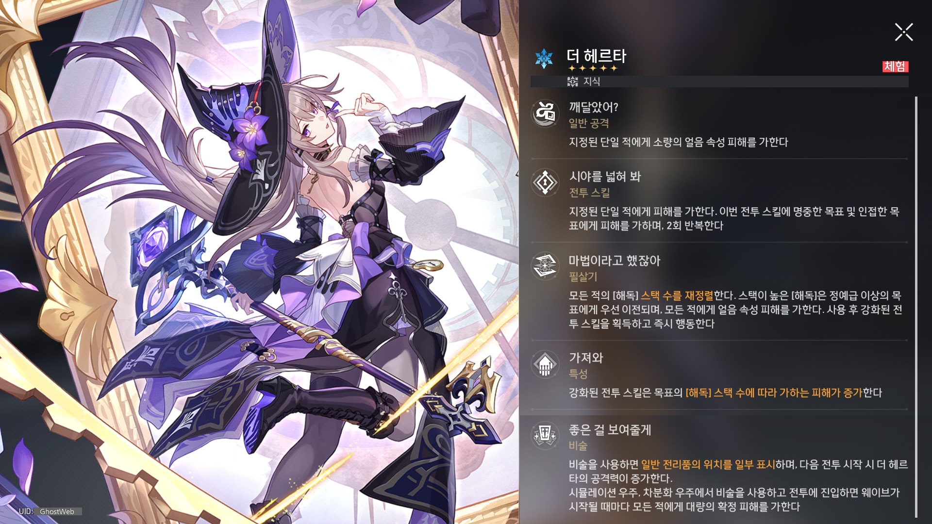 이번에는 지식, 얼음 캐릭터인 더 헤르타에 대해 정리해보도록 할게요.