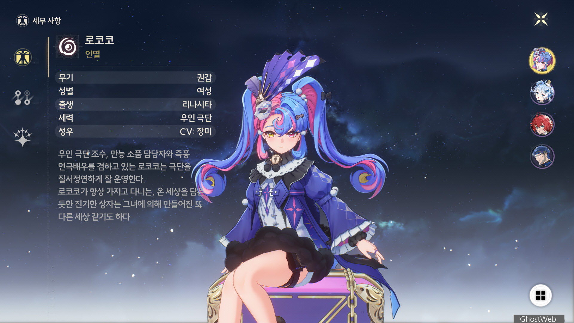 이번에는 5성 인멸 권갑 무기 캐릭터인 로코코에 대해서 정리해보도록 할게요.