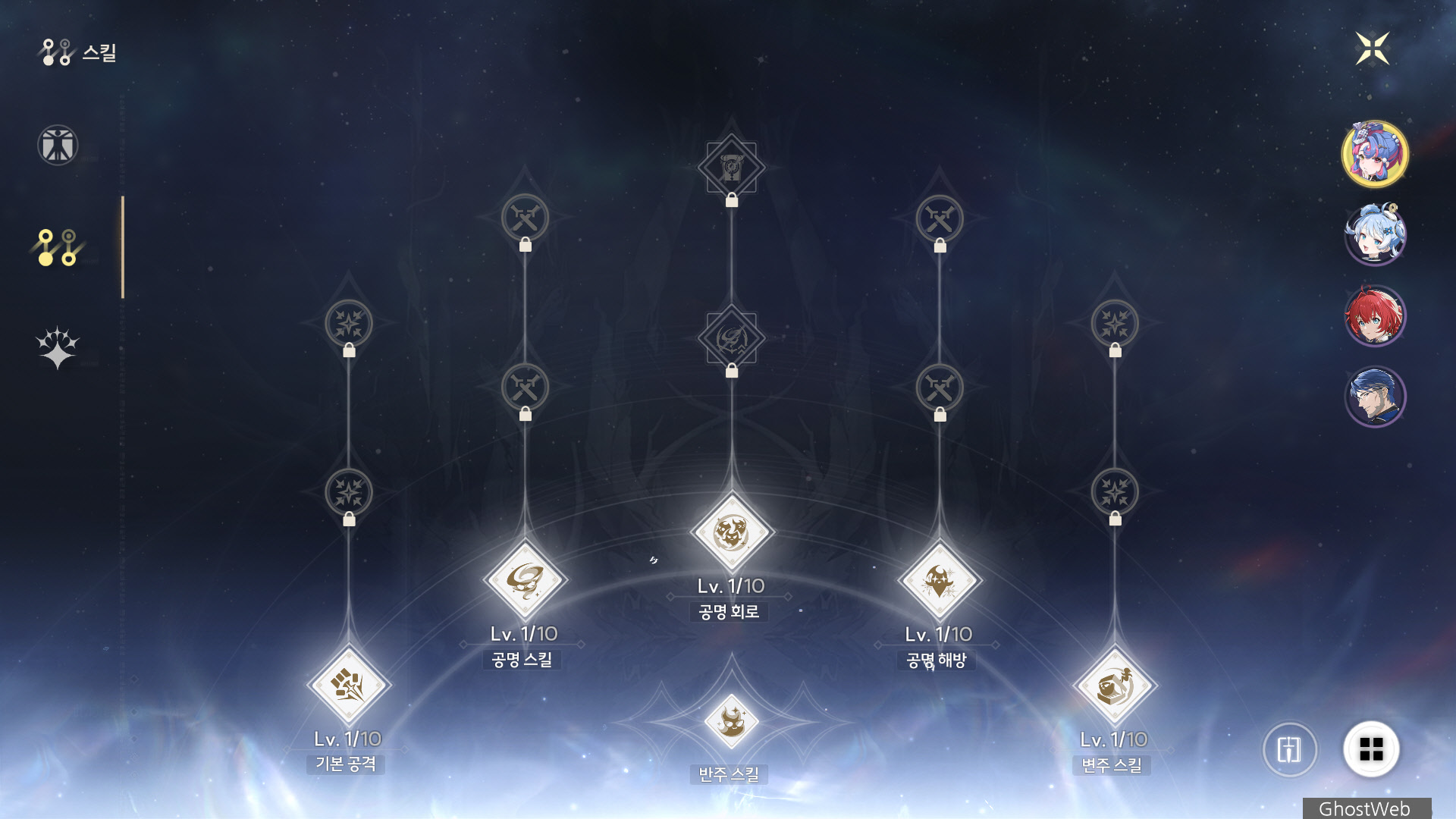 | 5 | 무대 위의 낙원 재건 | 공명 해방 즉흥 공연, 시작의 피해 배율이 20% 상승되며, 강공격의 피해 배율이 80% 상승된다. |