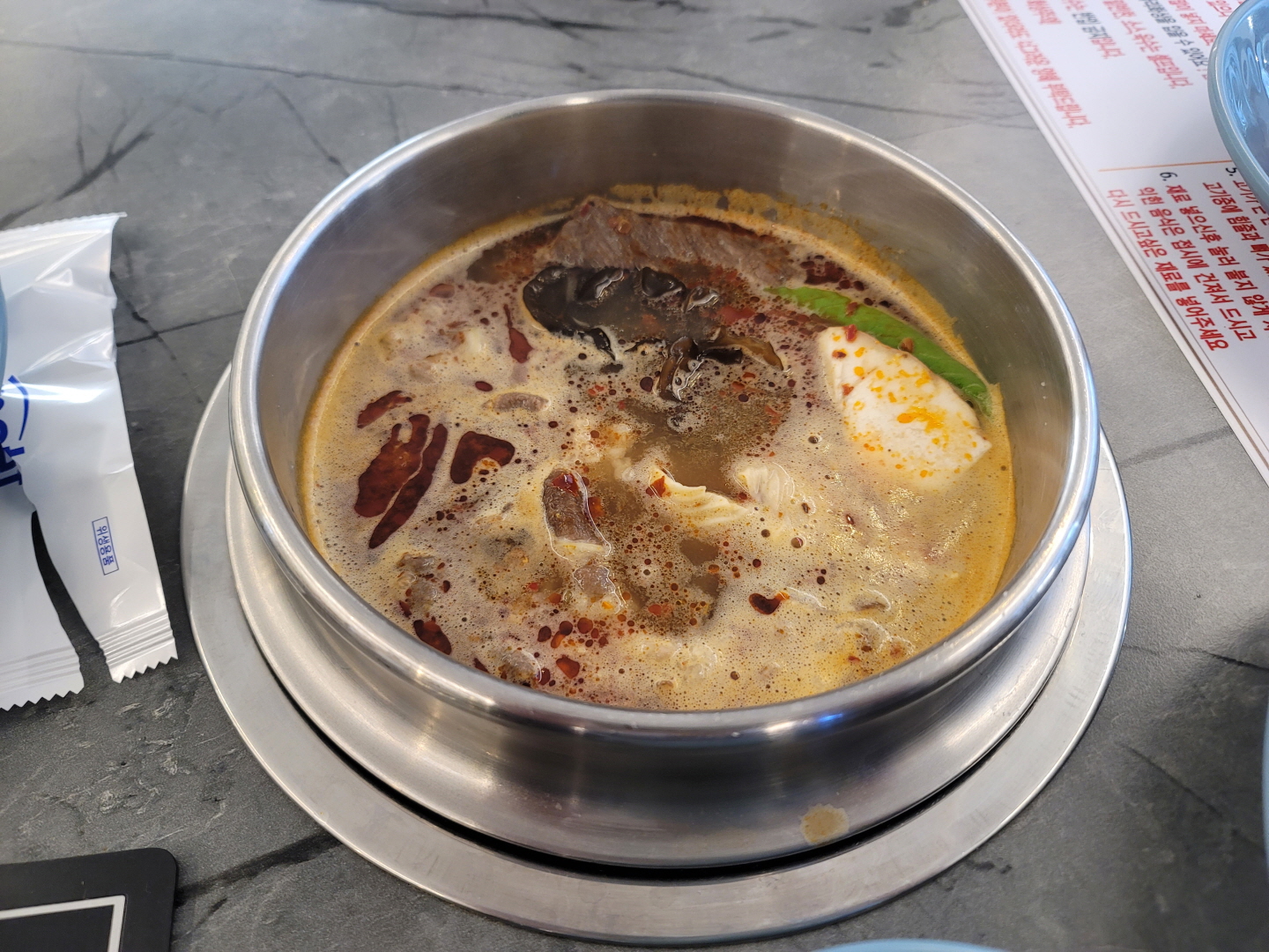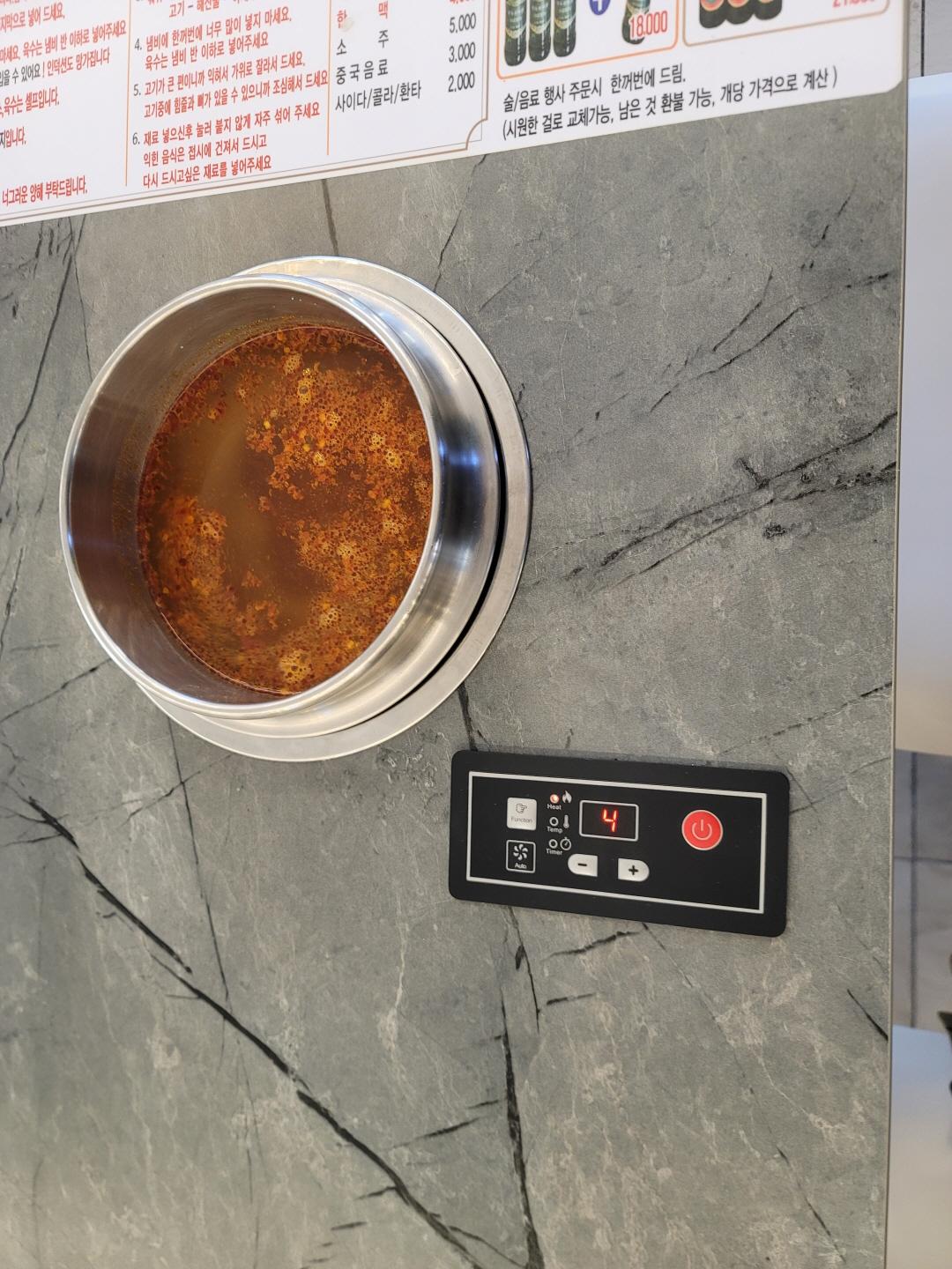 저는 사천마라 맛 육수를 선택하였는데 육수가 날아가면서 점점 매워지는 거 같아 가게 한편에 있는 육수 주전자로 육수를 리필해서 드시면 괜찮아요.