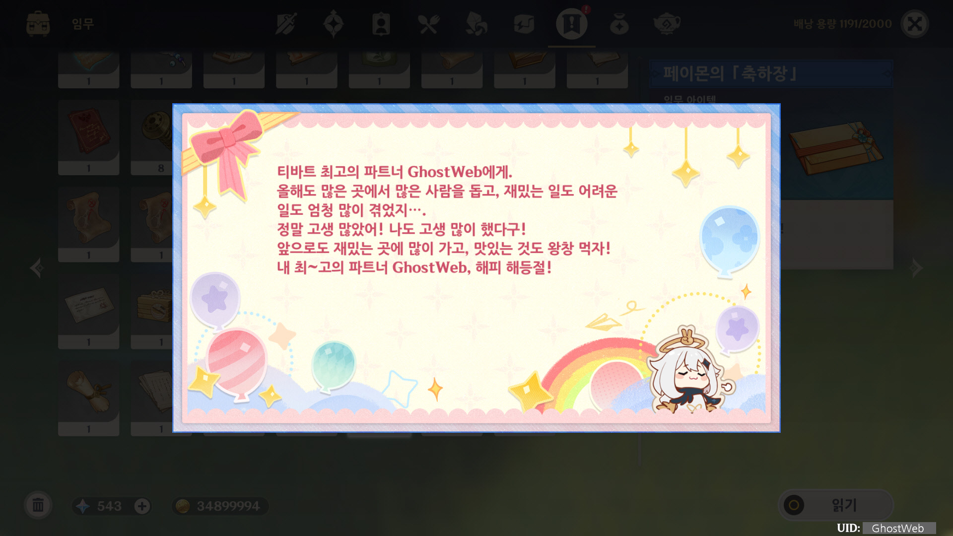 모든 이벤트 컨텐츠를 완료하면 다음과 같은 아이템을 인벤토리(가방)에서 확인할 수 있어요.