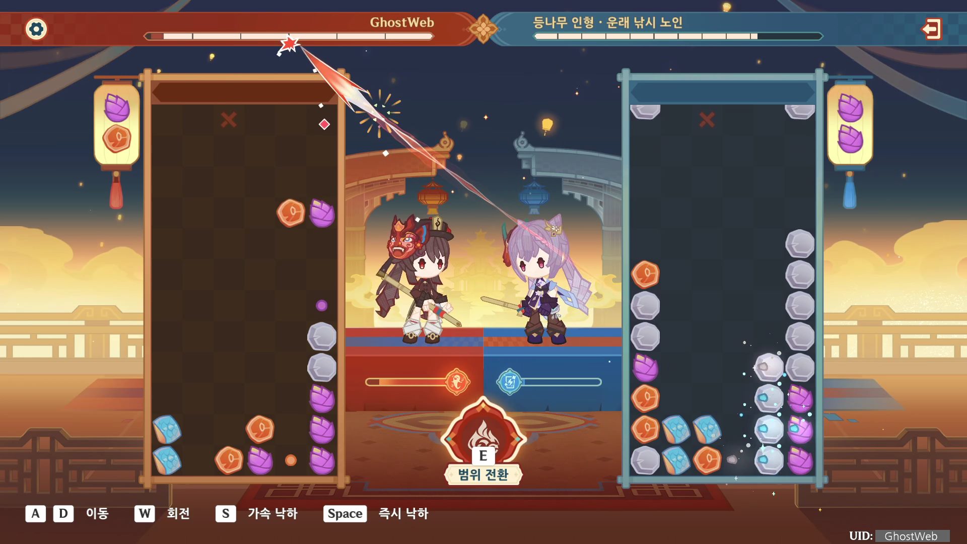 각 블록의 쌍을 맞추고 스킬을 사용하여 상대를 이기세요. (다인 모드 지원)