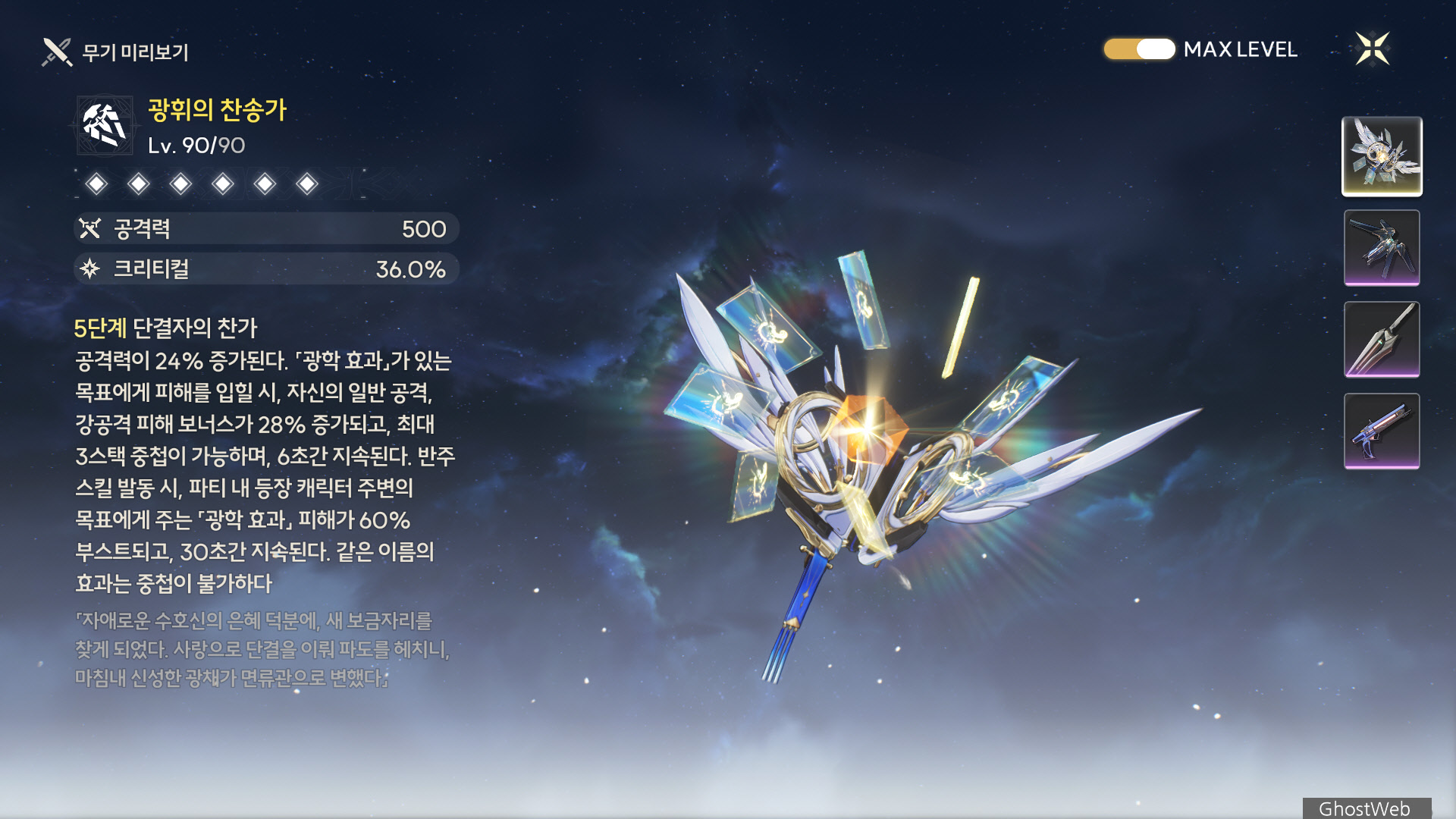 ○ 무기 : 증폭기 (전용 무기 : 광휘의 찬송가)