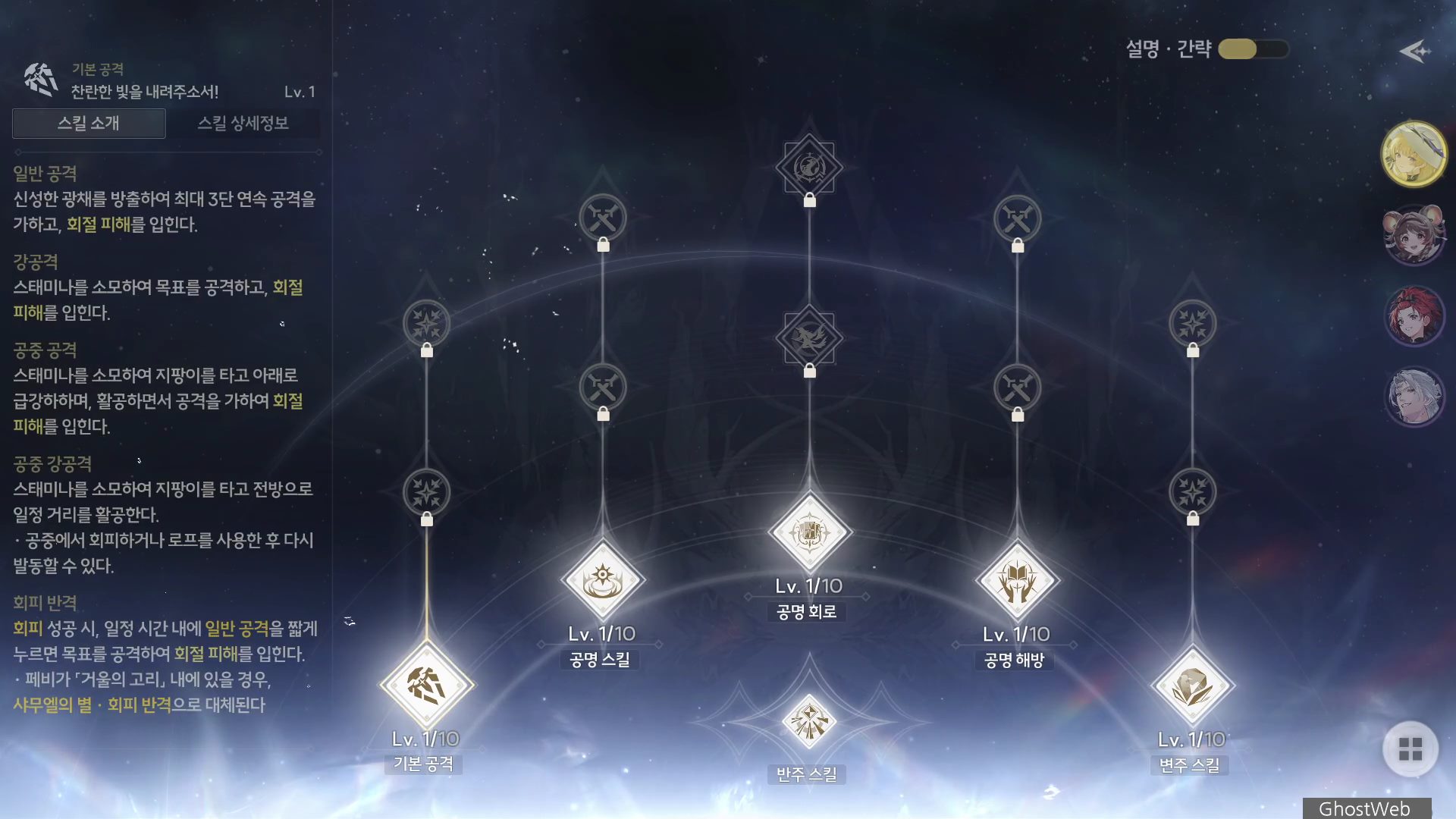 · 회피 성공 시, 일정 기간 내 일반 공격을 짧게 누르면 목표를 공격하여 회절 피해를 가한다.