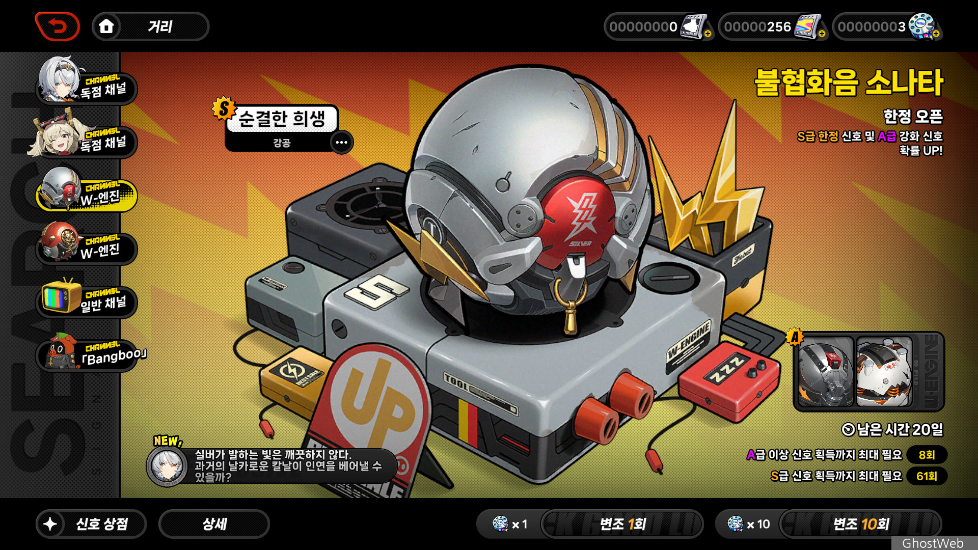 | 1 | 정전하 | 0호·엔비가 시전한 [강화 특수 스킬]이 적에게 명중 시, [백뢰]의 추가 피해를 연속으로 3회 발동한다. 해당 효과는 [백뢰] 스택을 소모하지 않는다. |