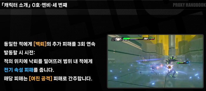 | 6 | 프리퀄 주인공 | [백뢰]의 추가 피해를 6회 발동 시, 전자 와류를 일으켜 타깃 및 타깃과 인접한 적에게 0호·엔비 공격력의 1000%에 해당하는 전기 속성 피해를 준다. 해당 피해는 여진 공격 피해로 간주한다. |