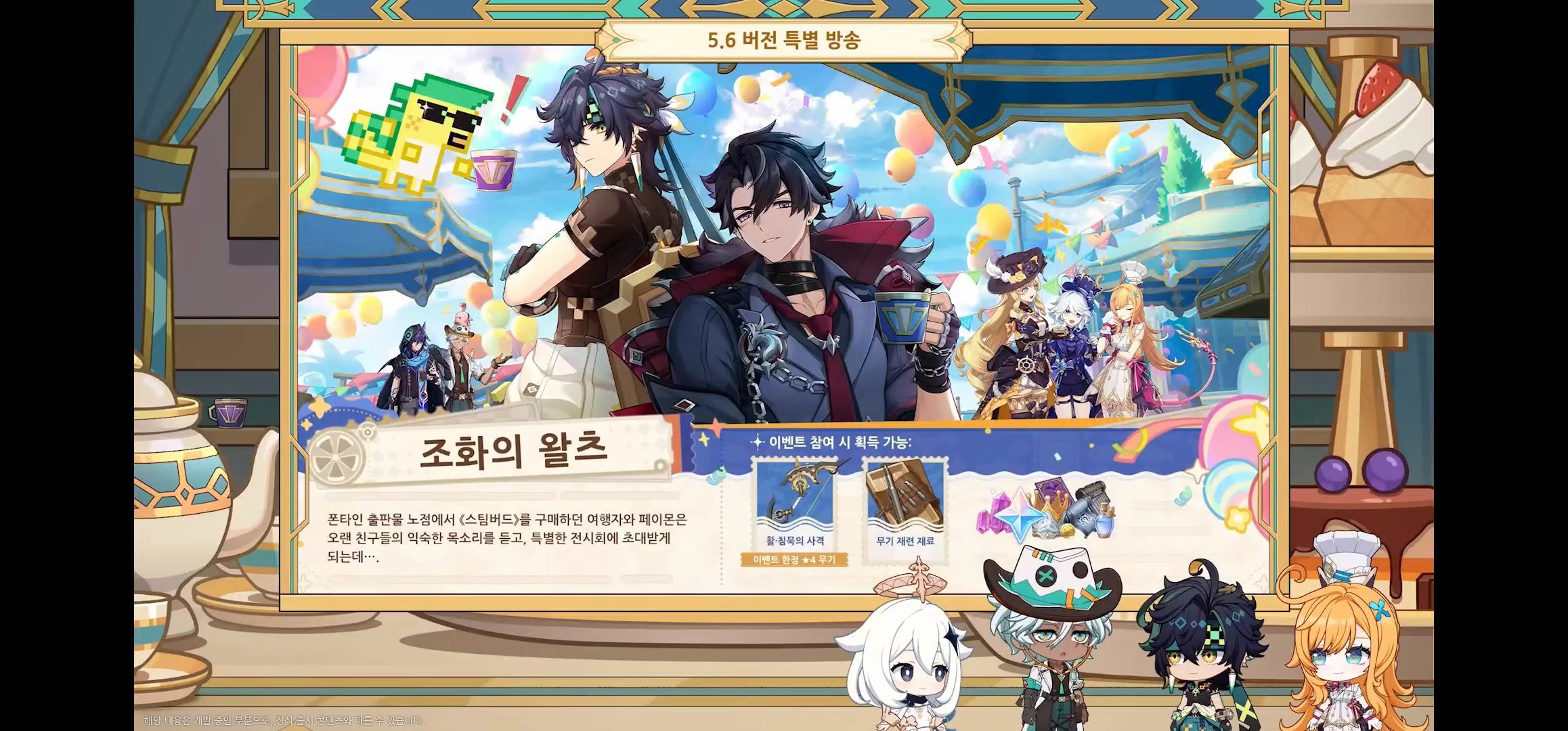 | [원신] 5.3 업데이트 특별 방송 정리 (뜨거운 환혼시, 마비카, 시틀라리, 남연, 리딤코드) (0) | 2024.12.21 |