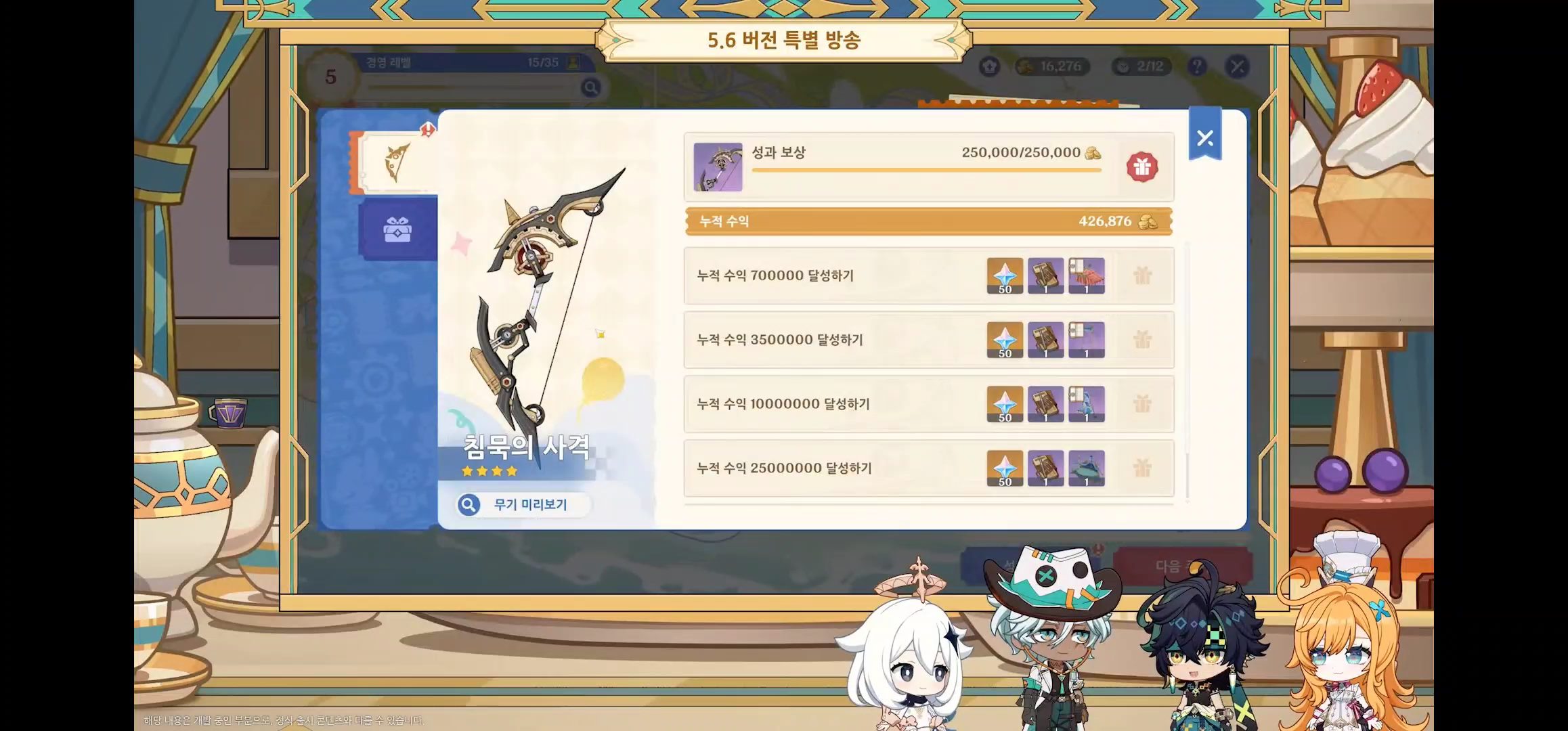 - 신규 무기 : 맛의 지휘자 (5성, 장병기, 에스코피에 전용 무기)