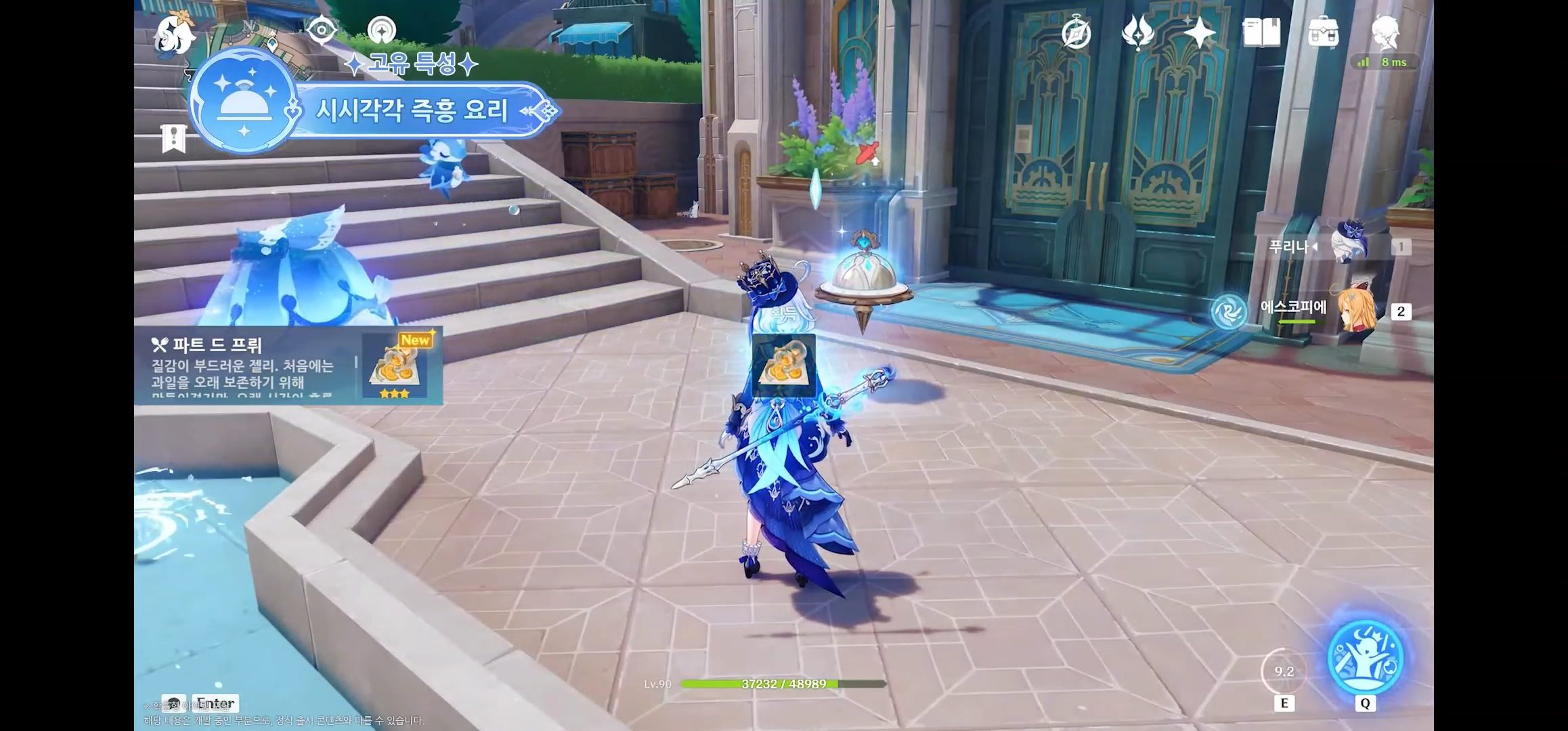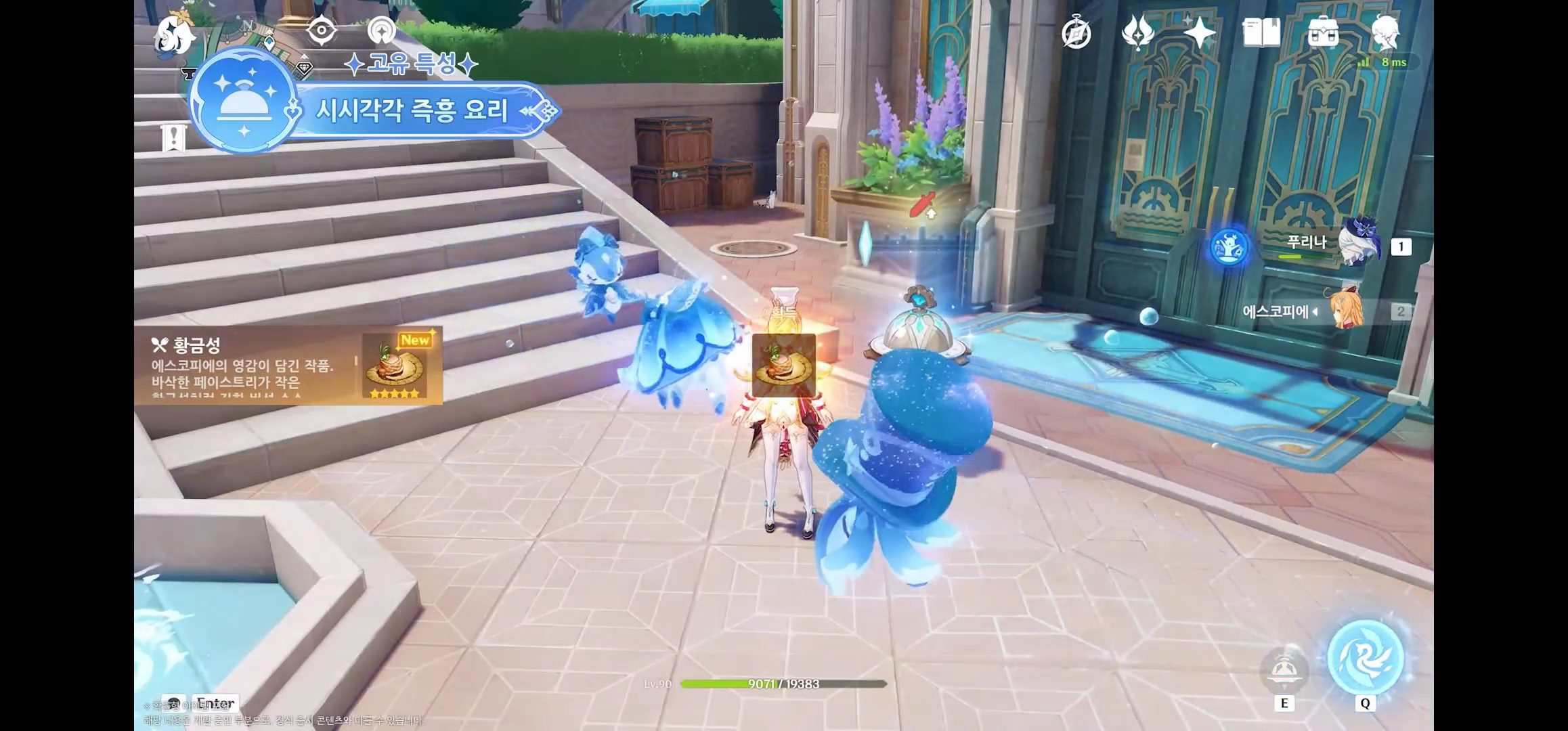- 원소 전투 스킬을 홀드하여 발동하면 소환된 장치는 원소 에너지를 흡수해서 요리 제조 (특별 요리 제조 가능)