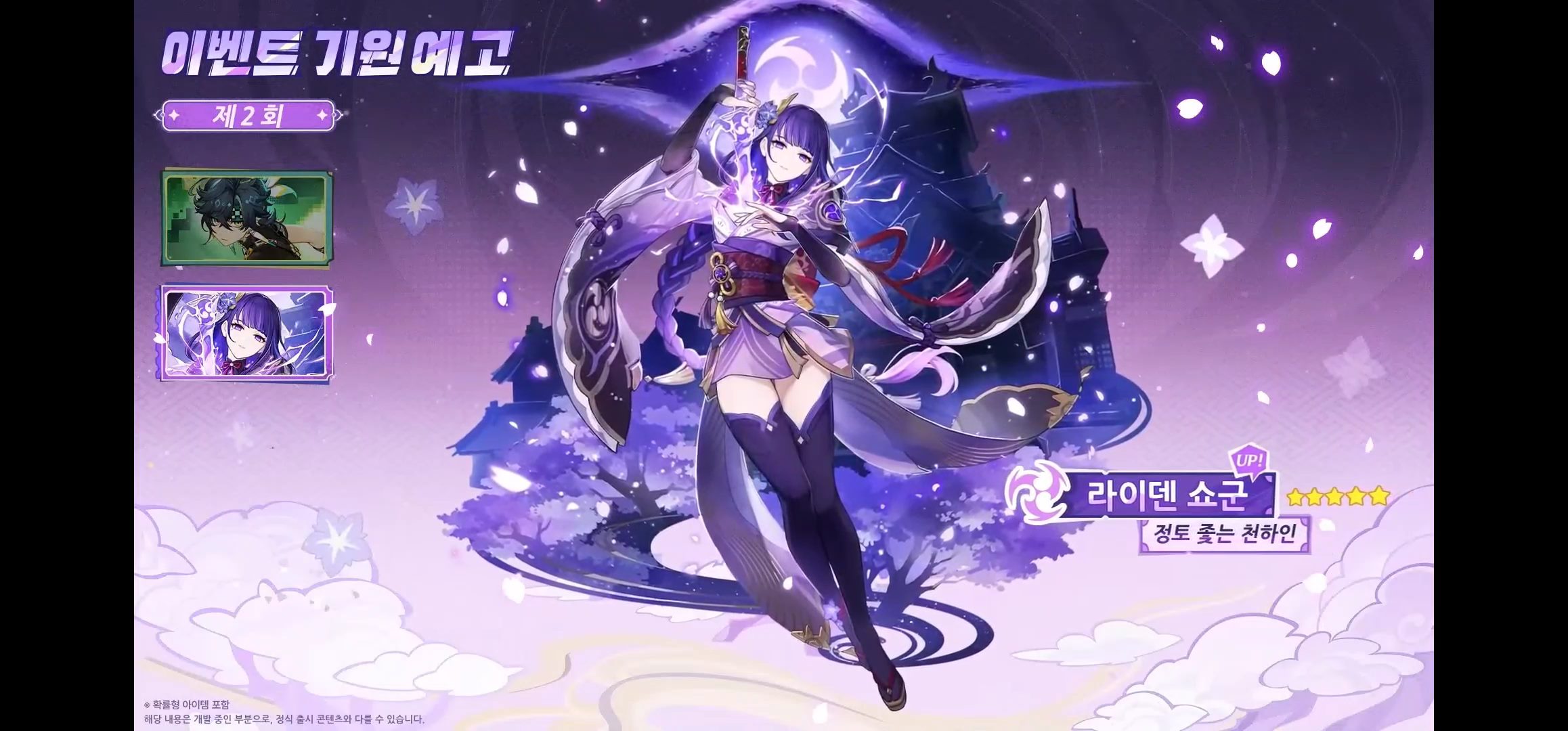 - 라이덴 쇼군 (5성, 번개, 장병기)