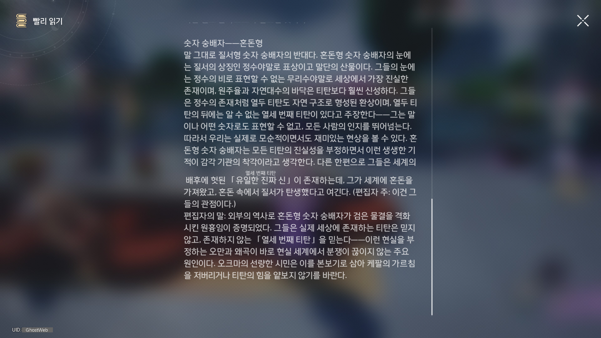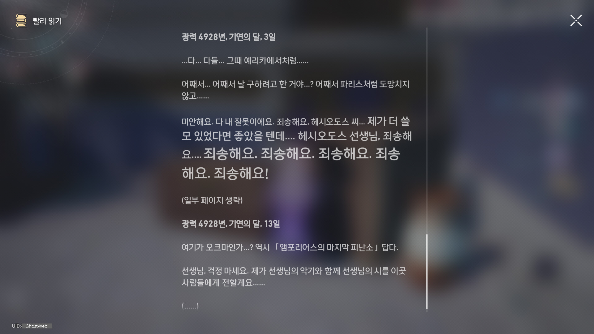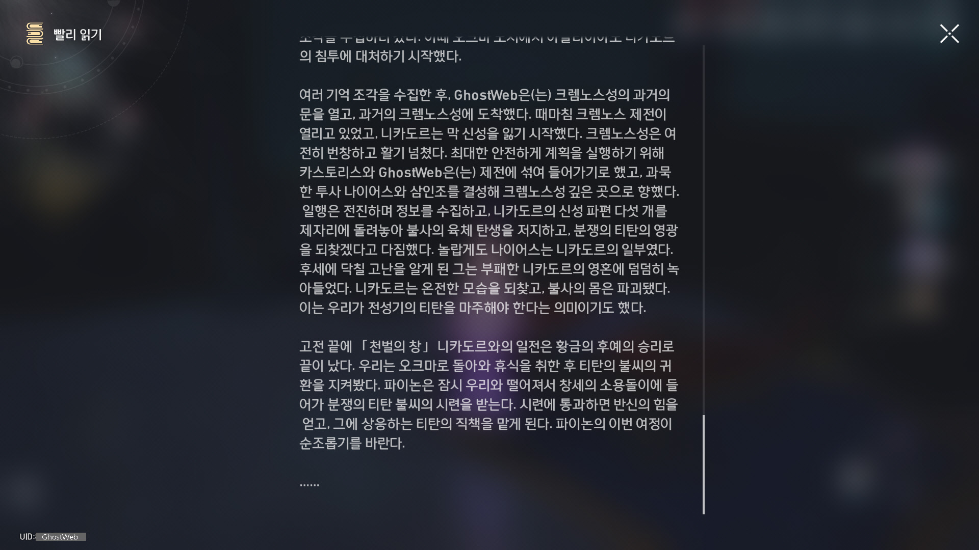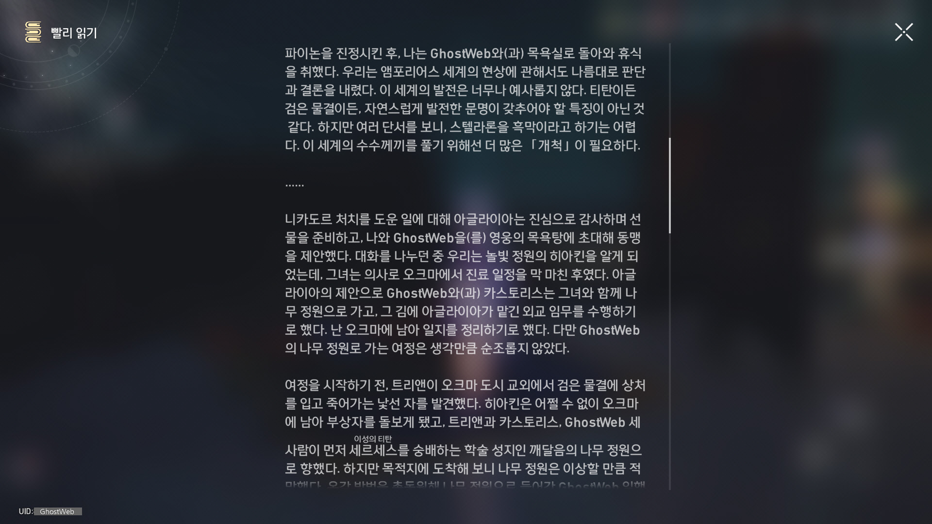 | [붕괴: 스타레일] 앰포리어스 - 분쟁의 폐허 - 크렘노스성(전리품, 약충, 서적 위치 정리) (0) | 2025.05.07 |