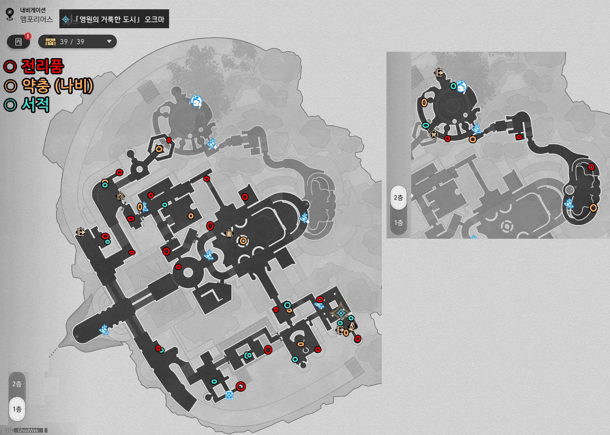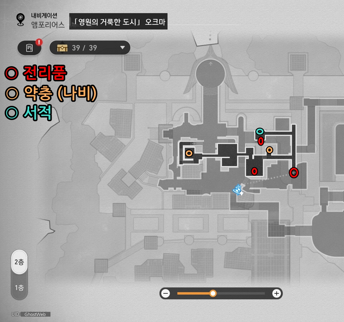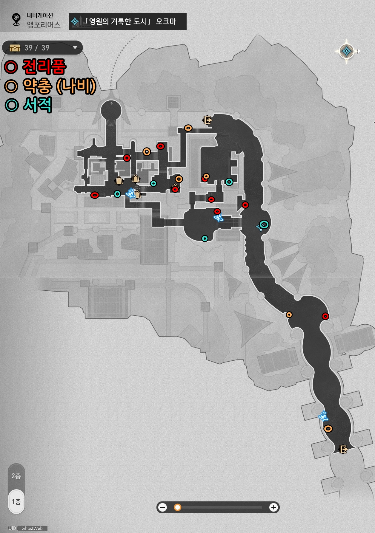 오크마는 1, 2층으로 탐험하기는 편하나 맵이 넓어서 탐험하는데 시간이 오래 걸릴 수 있어요.