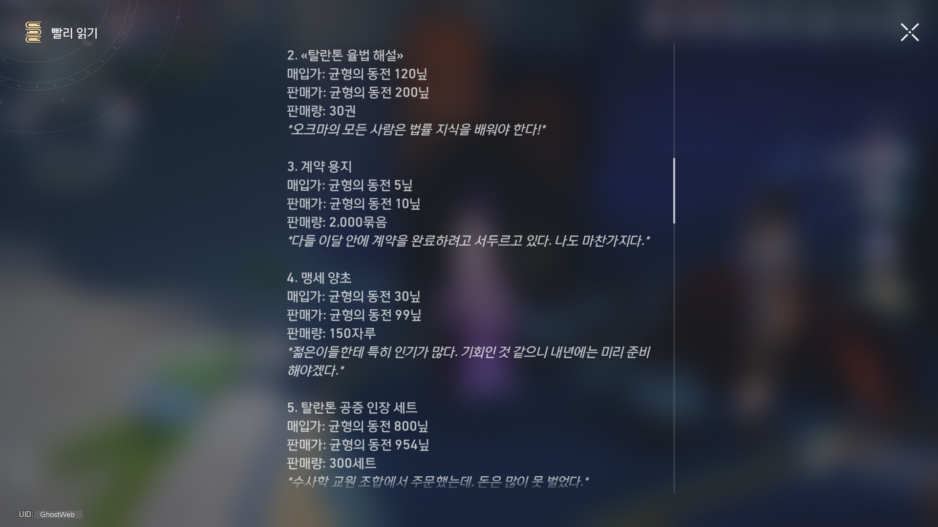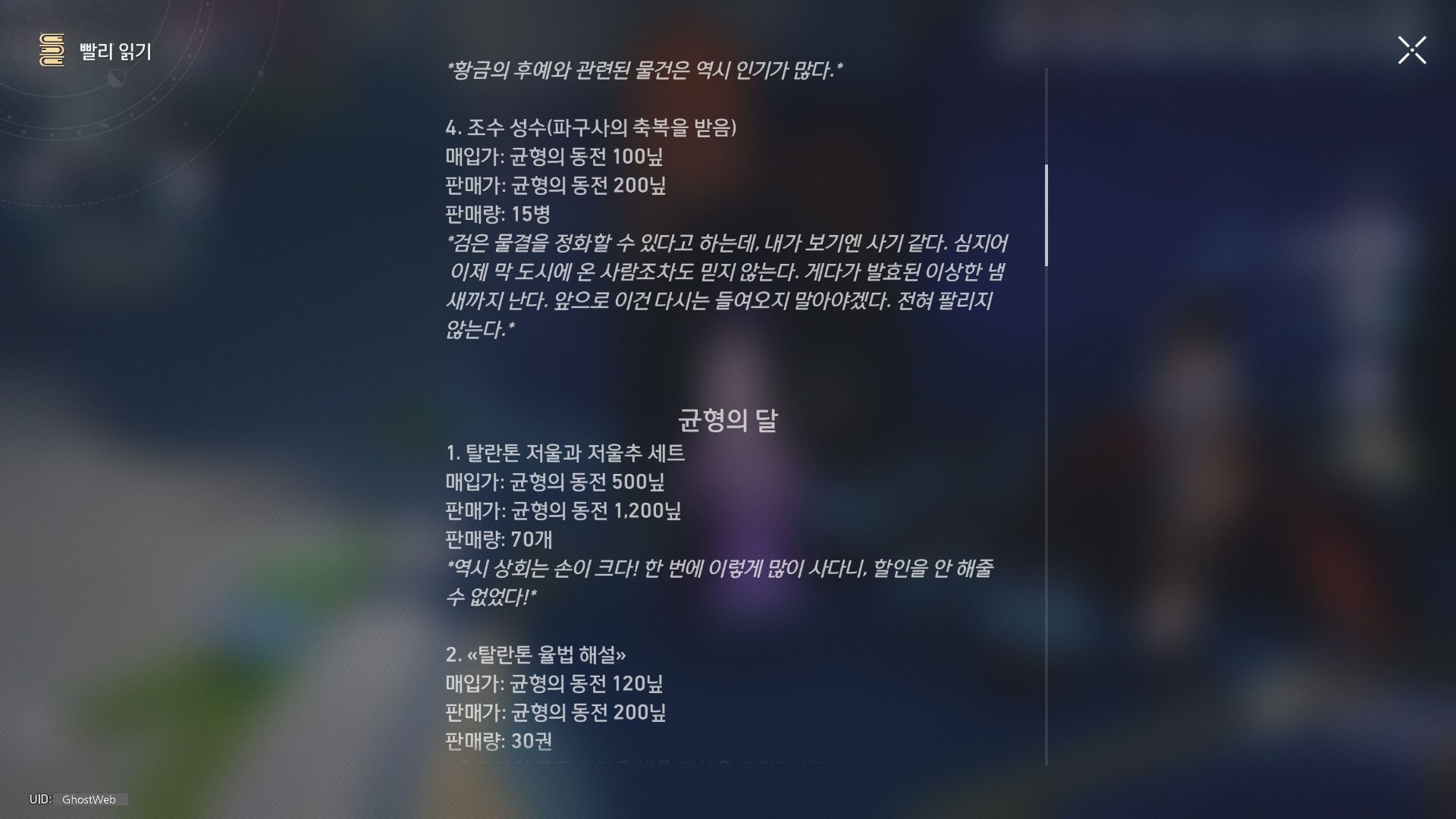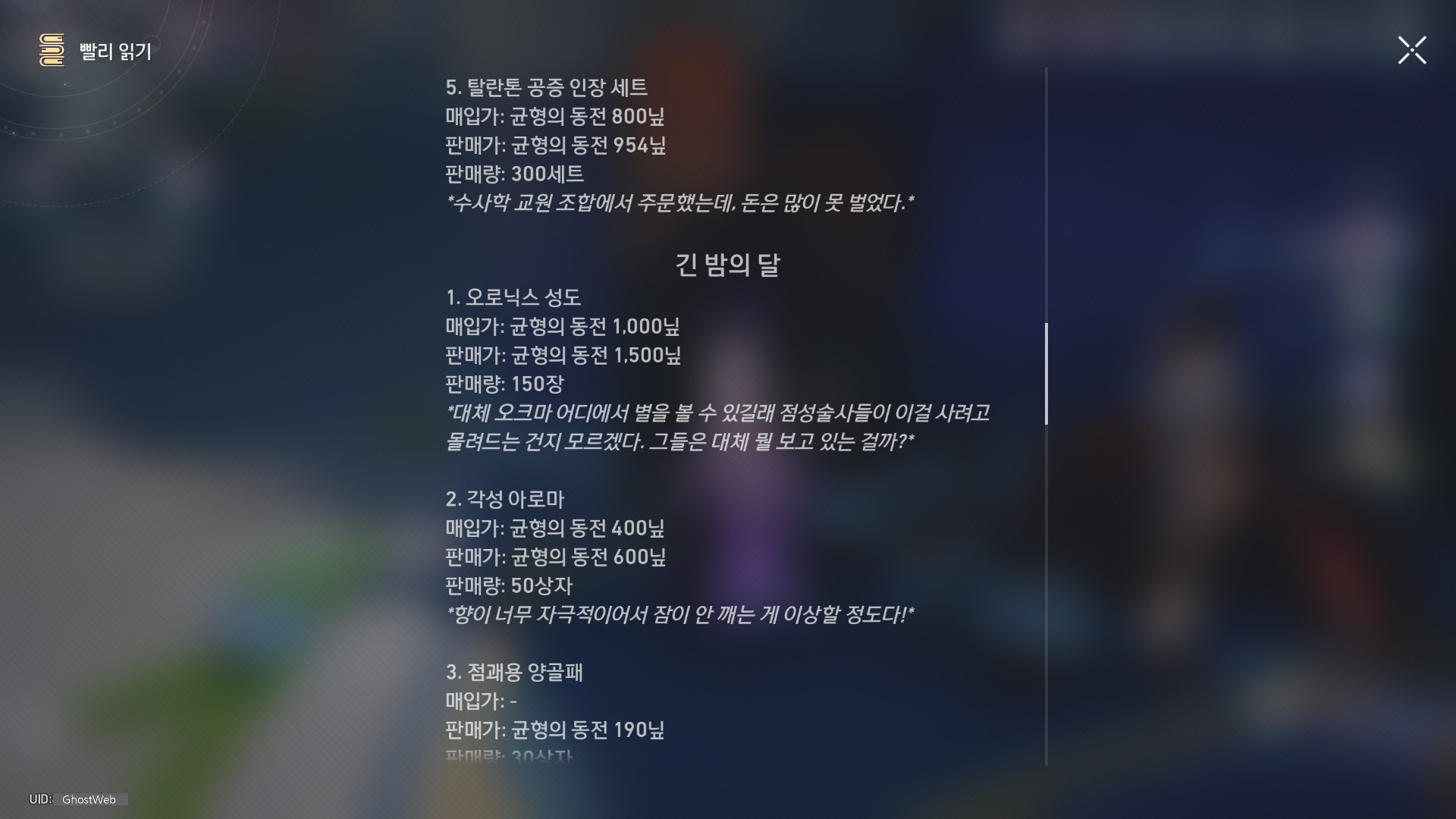 | [붕괴: 스타레일] 앰포리어스 - 크렘노스성 (전리품, 약충, 서적 위치 정리) (1) | 2025.05.05 |