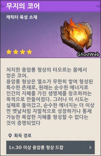 - 무지의 코어 (나타 - 용암룡 형상 처치)