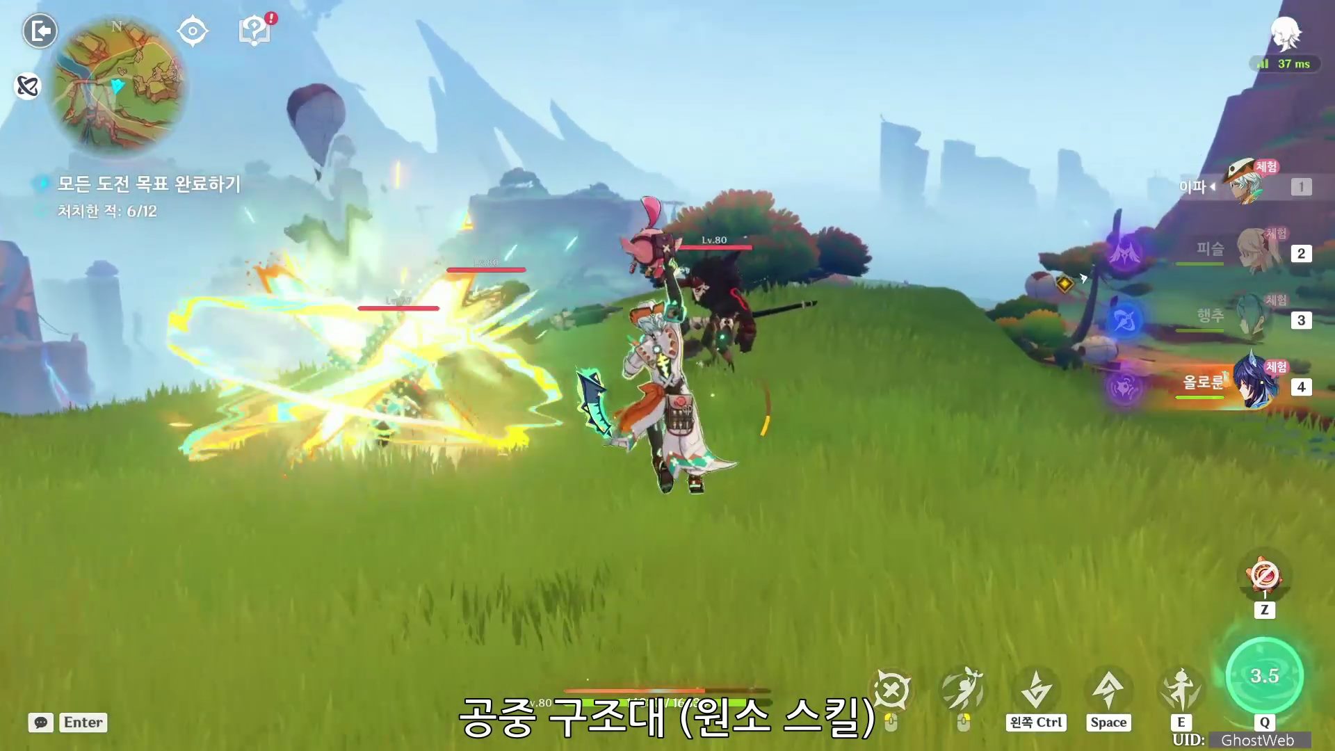 - 현재 필드 위의 캐릭터가 일정 높이의 공중에 있을 때 이파가 교체 등장 시 발동