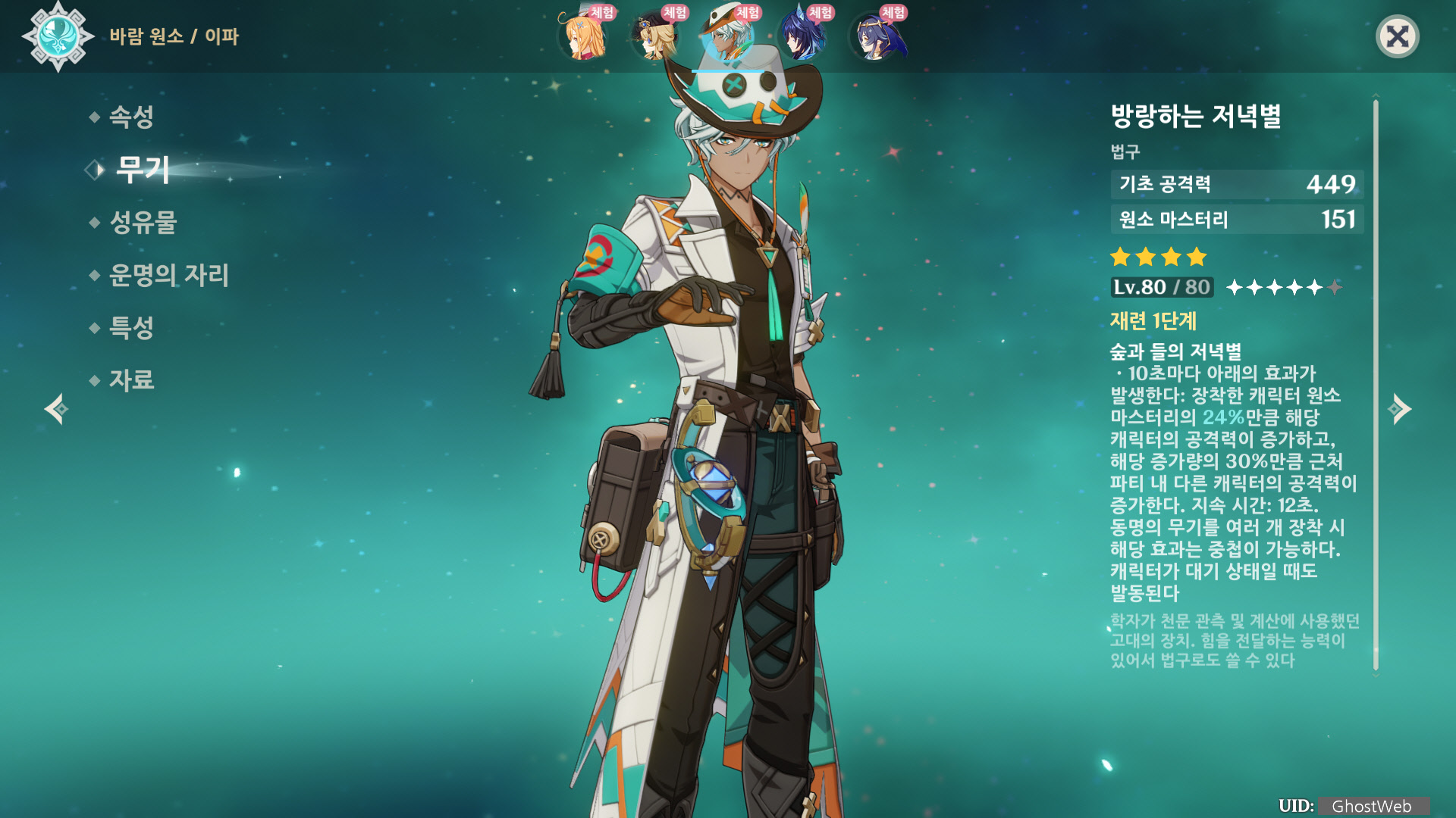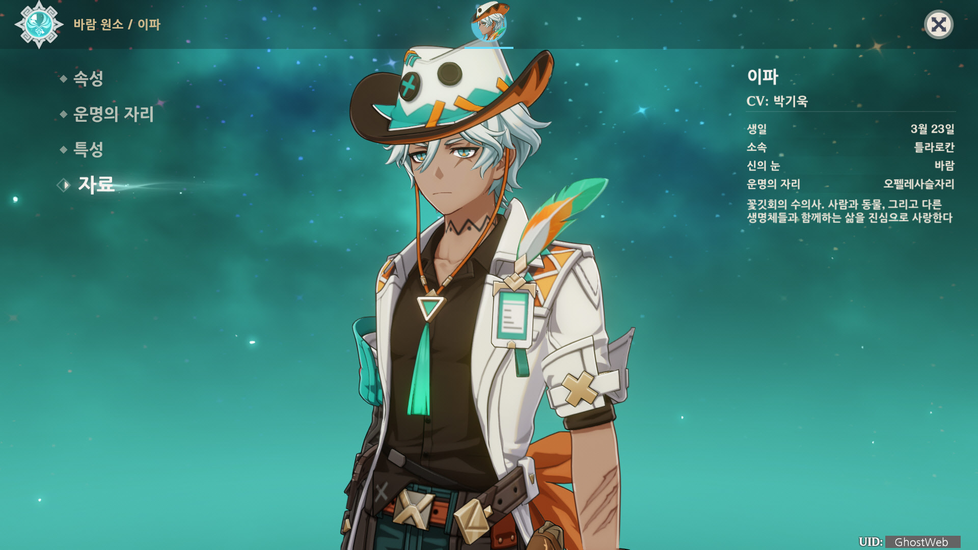 이번에는 4성 바람 원소 캐릭터인 이파에 대해서 정리해보도록 할게요.