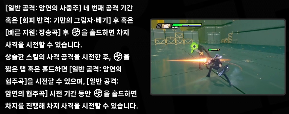 - 스킬 시전 후 이어서 [일반 공격: 암연의 사중주]의 네 번째 공격을 시전할 수 있다.