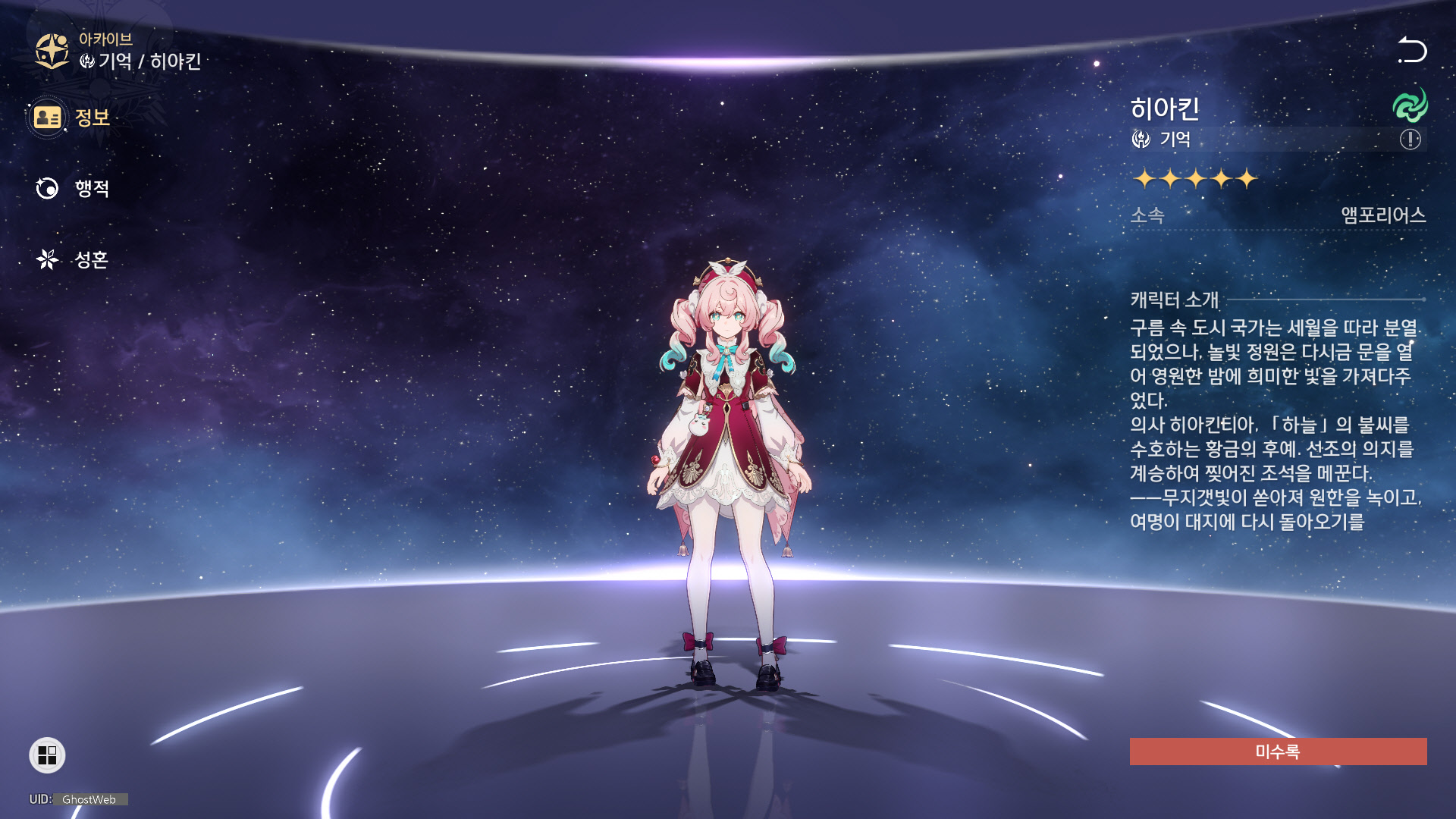 | [붕괴: 스타레일] 카스토리스 정리 (기억, 양자, 스킬, 행적, 성흔, 저승길에 핀 꽃) (0) | 2025.04.09 |