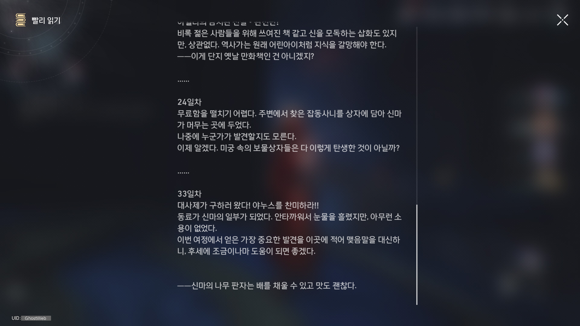 | [붕괴: 스타레일] 앰포리어스 - 분쟁의 폐허 - 크렘노스성 (전리품, 약충, 서적 위치 정리) (0) | 2025.05.10 |