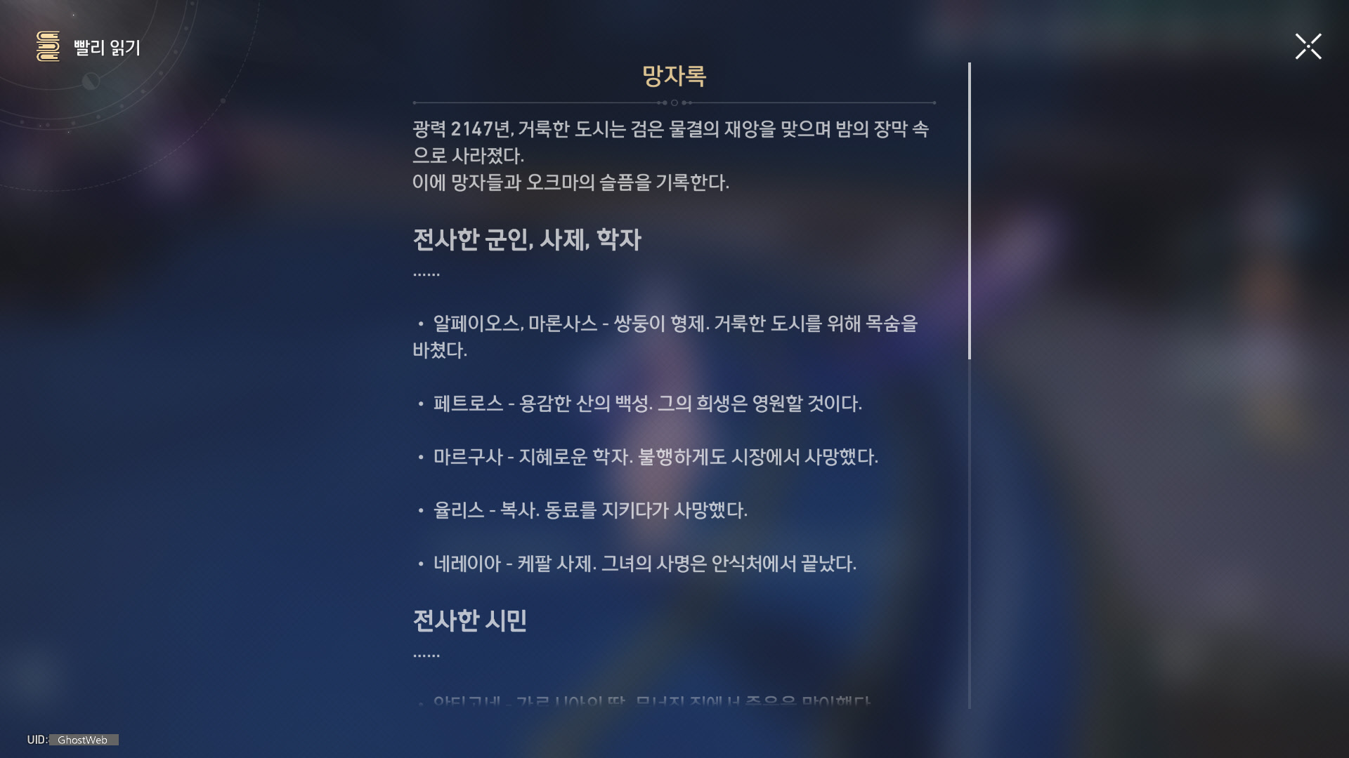 망자록의 경우 필드에 있는 NPC와 대화를 통해 망자록의 내용이 점차 추가돼요.