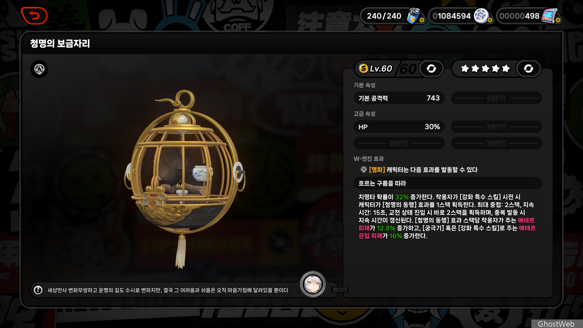 - 파티원이 궁극기 시전 시, 의현이 지속적으로 기운을 2pt 회복한다. (지속 시간 10초)