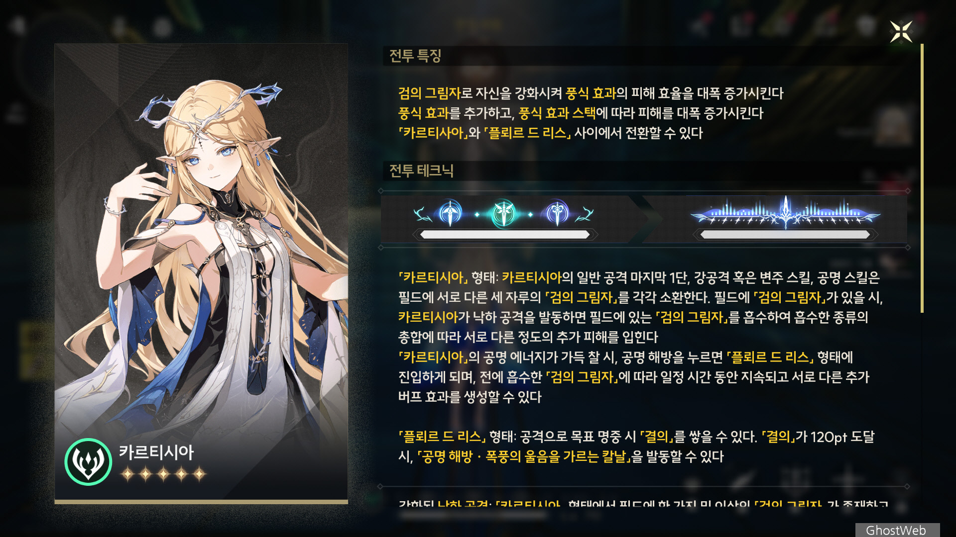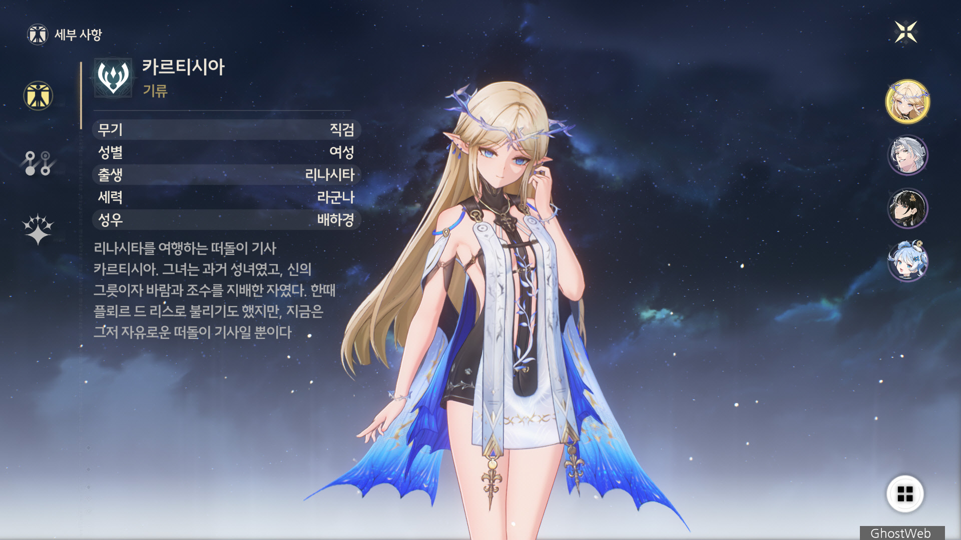 이번에는 기류, 직검 캐릭터인 카르티시아에 대해서 정리해보도록 할게요.