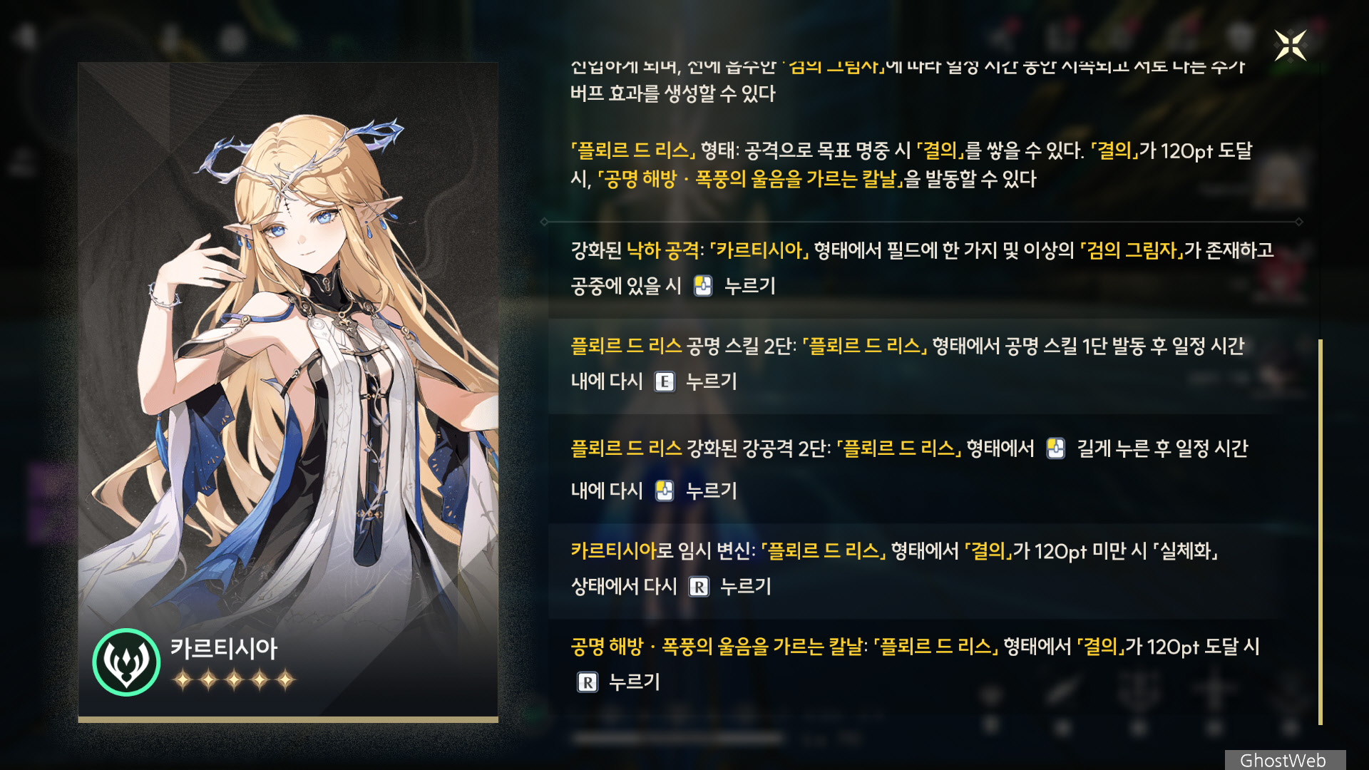 · 일반 공격 · 카르티시아가 일반 공격 · 플뢰르 드 리스로 대체된다.