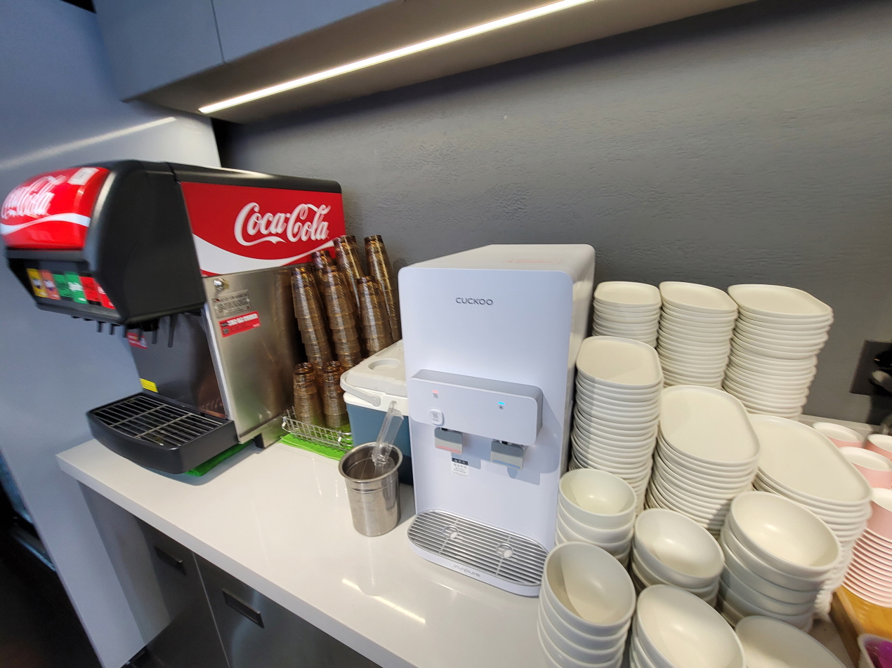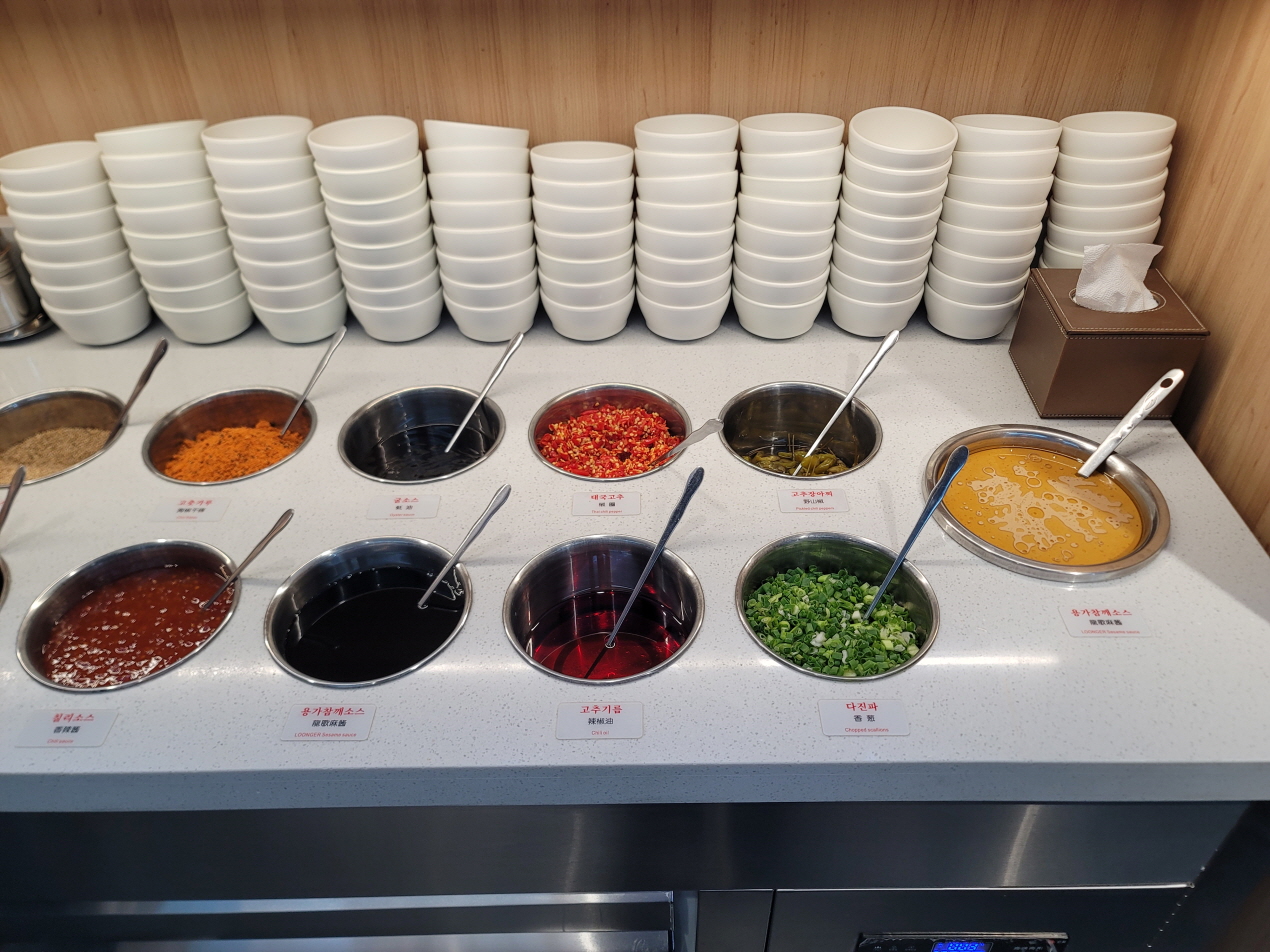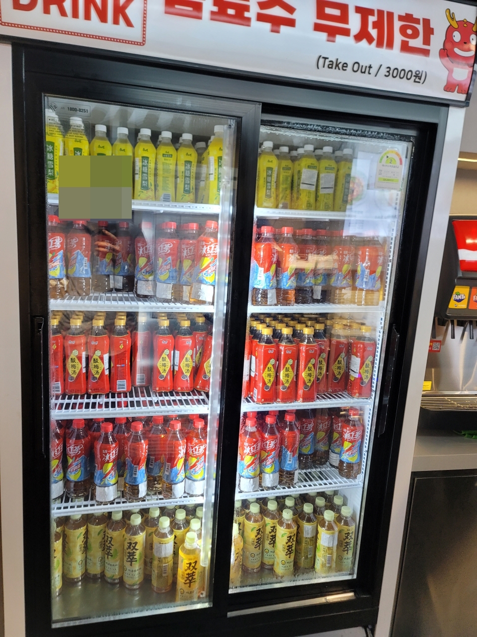 국물 주문을 하고 중앙에 있는 테이블에 가서 소스와 마실 음료를 가져올 수 있는데 5 종류의 중국 음료가 있어서 매운 국물을 중화 시킬 수 있어서 좋았어요.
