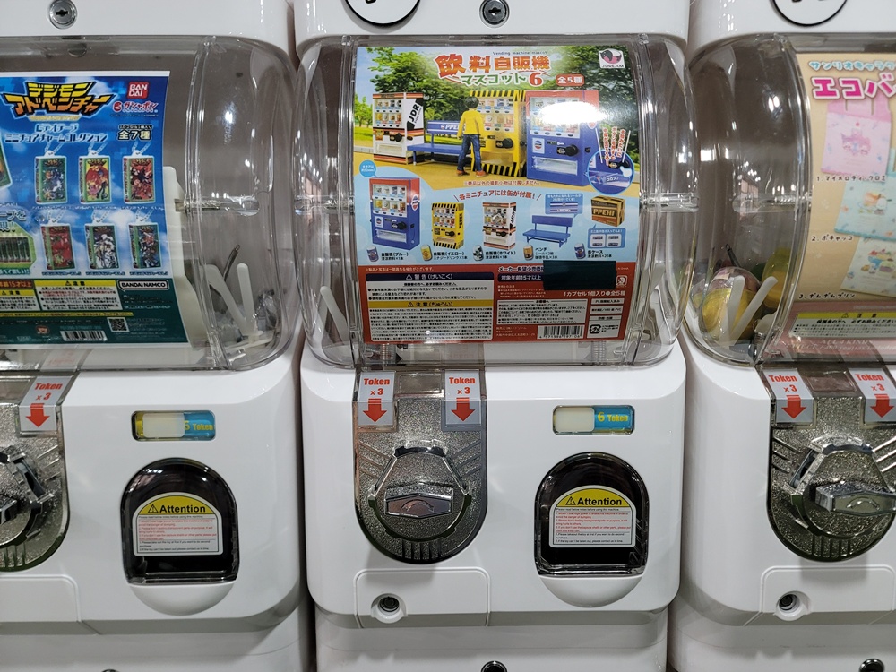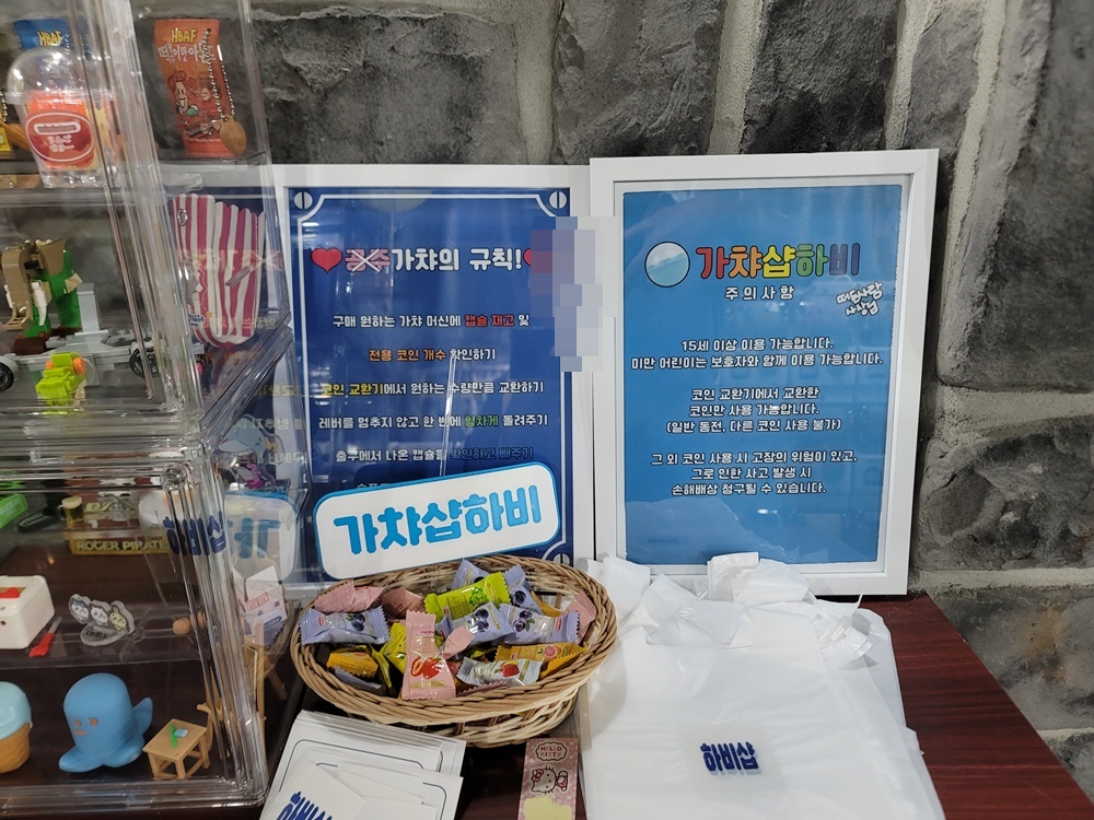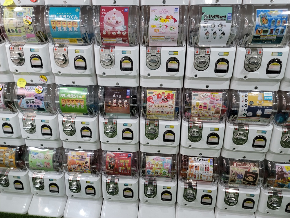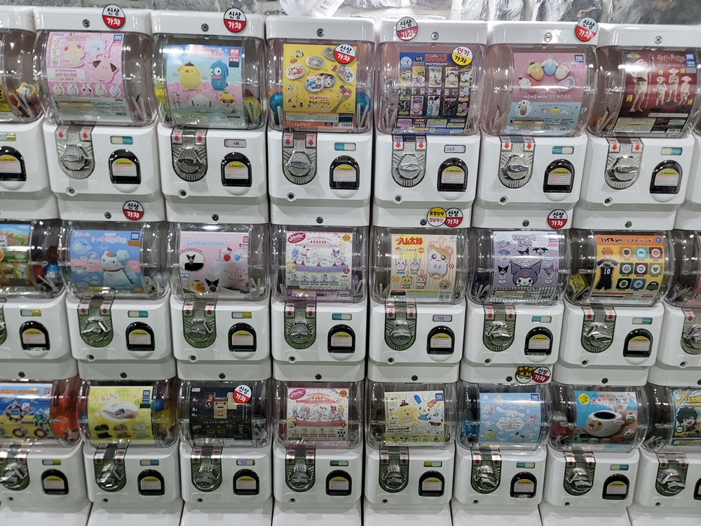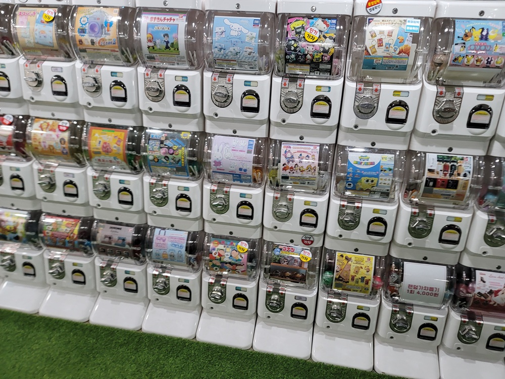 코인 교환기는 현금과 카드도 되서 바로 코인으로 교환이 가능하며, 갭슐을 직접 고를 수도 있어요.