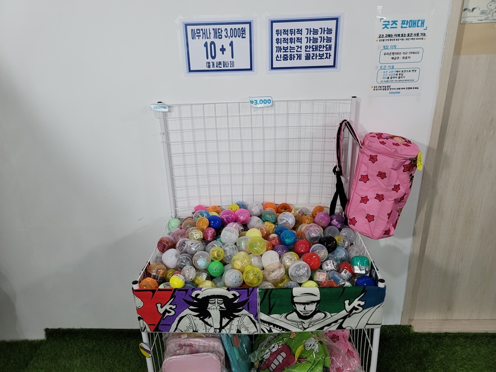 이외에도 애니메이션 관련 굿즈를 판매하고 있어서 성남, 모란역 인근에 사시는 분들은 서울까지 가지 않고 다양한 가챠와 간단한 굿즈를 구매할 수 있어요.