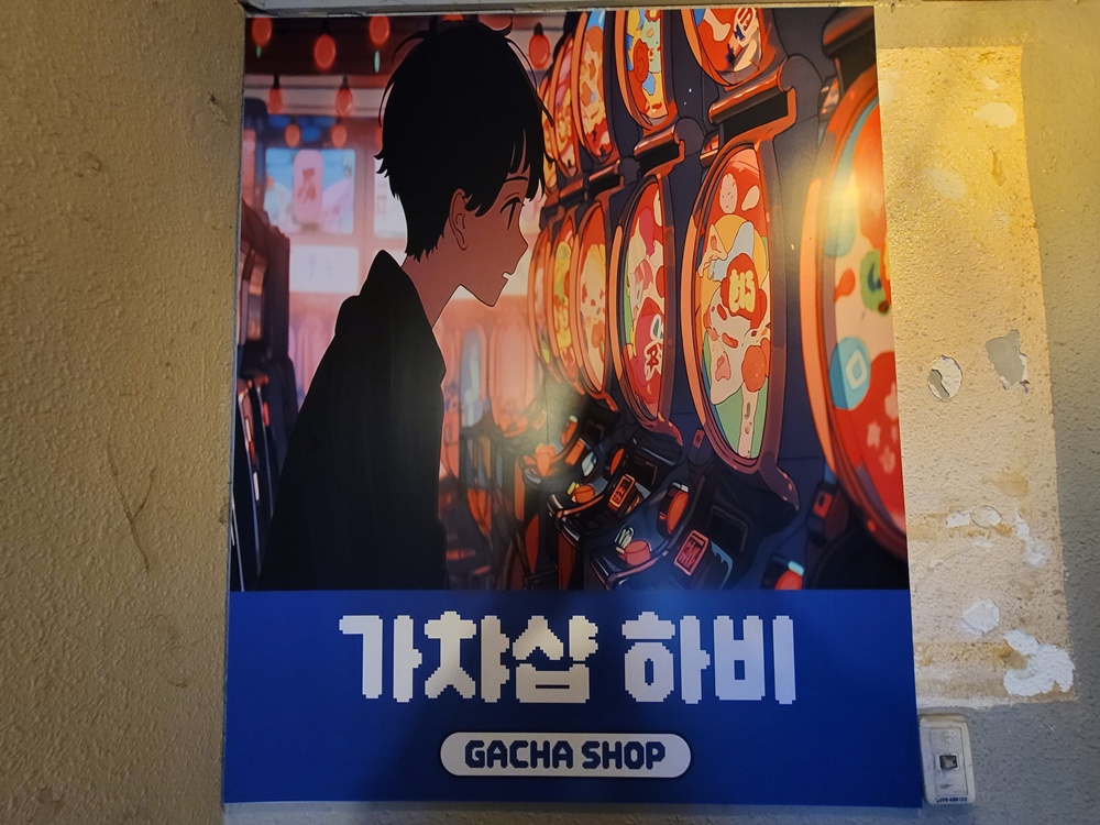 2층 한 층이 가챠삽 하비 층으로 캐릭터, 음식, 소리/녹음 등의 기능이 있는 가챠 등 다양한 가챠 제품을 판매하고 있어요.
