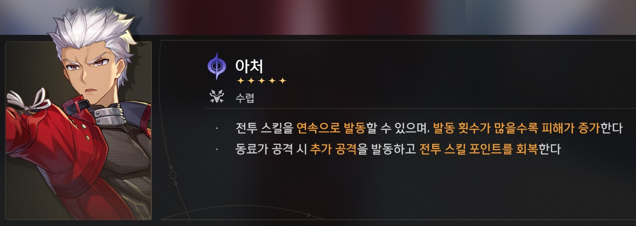 이번에는 콜라보 캐릭터인 아처에 대해서 정리해보도록 할게요.