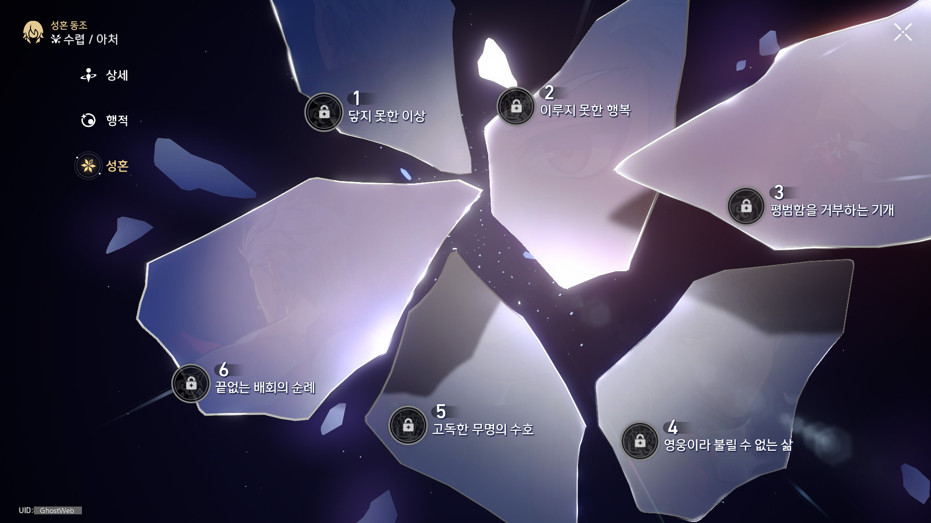| 2 | 이루지 못한 행복 | 필살기 발동 시 적의 양자 속성 저항을 20% 감소시키며, 대상에게 양자 속성 약점을 부여한다. 지속 시간 : 2턴 |