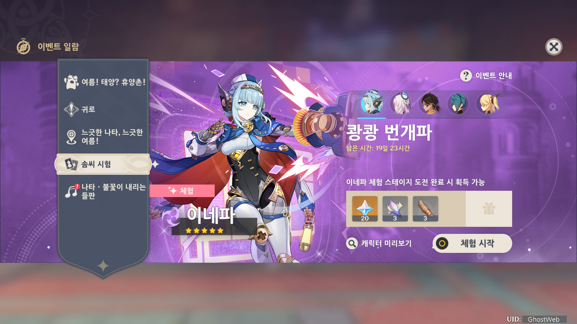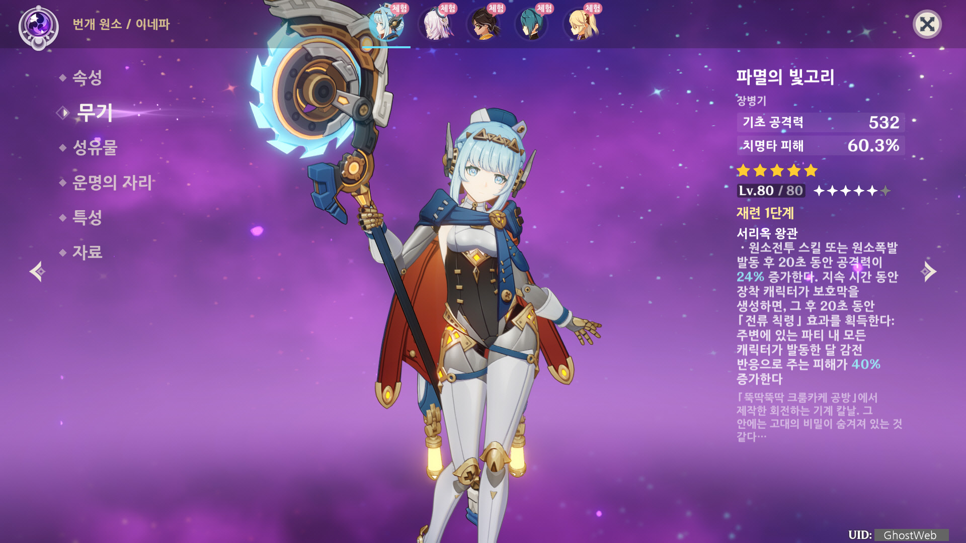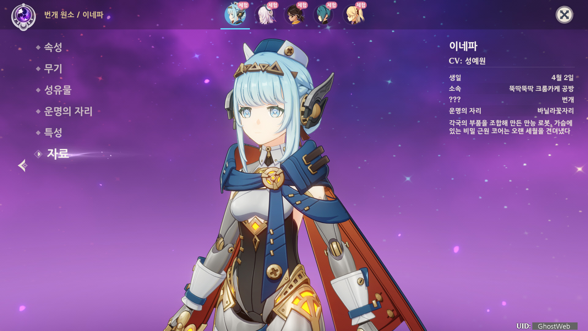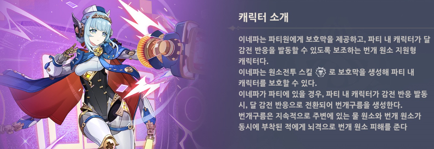 이번에는 5성 번개 원소 캐릭터인 이네파에 대해서 정리해보도록 할게요.