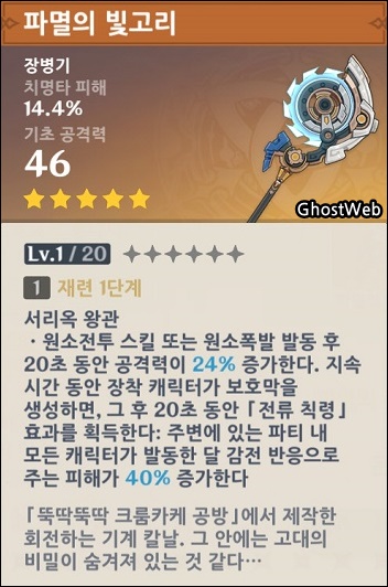 - 파티 내 자신의 캐릭터가 달 감전 반응 발동 시, 원소 에너지를 5pt 회복한다.