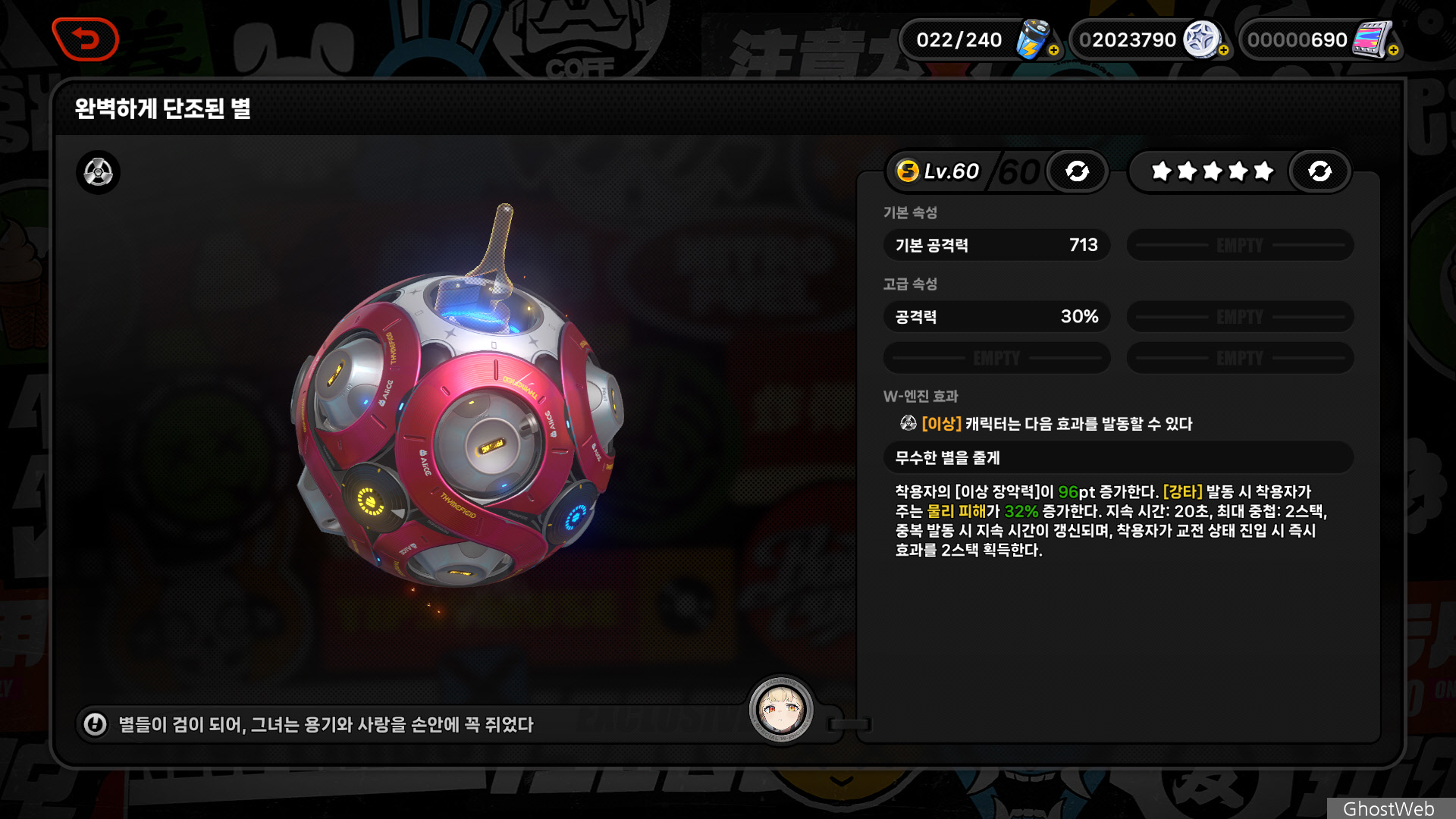 ○ 특성 : 이상 (전용 W-엔진 : 완벽하게 단조된 별)