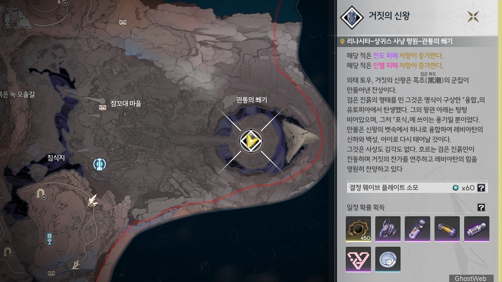 거짓의 신왕은 리나시타 스토리 진행 중에 대적할 수 있지마, 스토리와 상관 없이 접근도 가능해요.