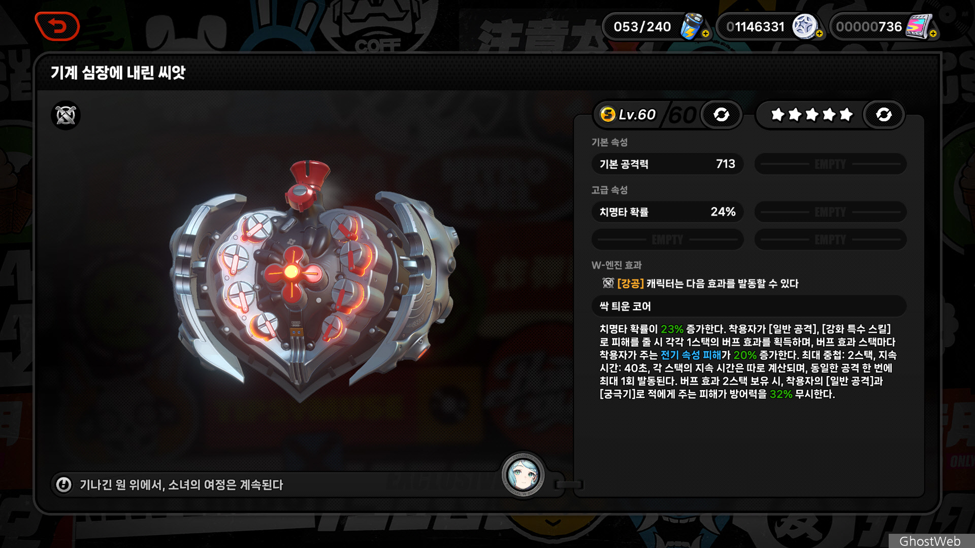 ○ 특성 : 강공 (전용 W-엔지: 기계 심장에 내린 씨앗)