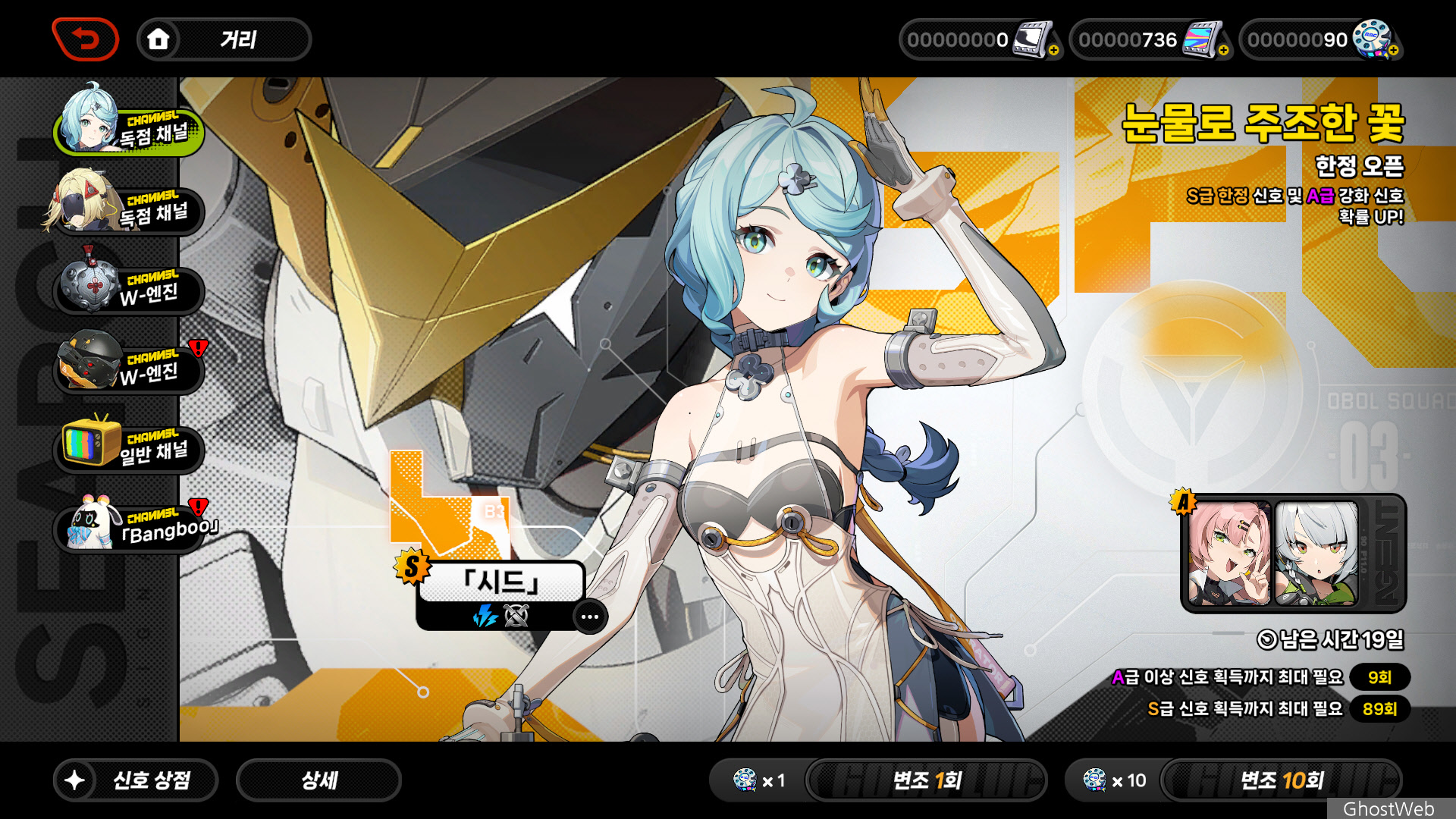 이번에는 오볼로스 소대, 전기, 강공 캐릭터인 시드에 대해서 정리해보도록 할게요.